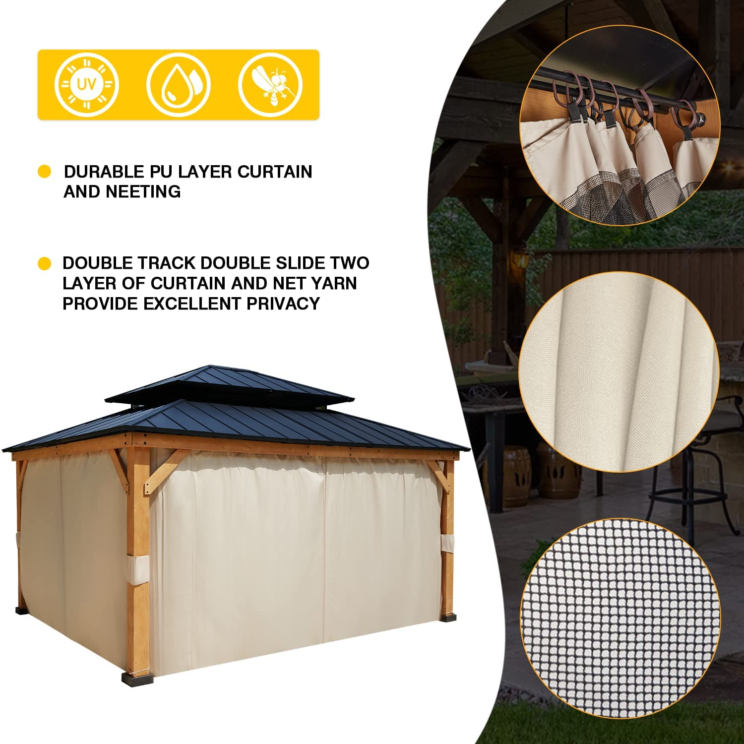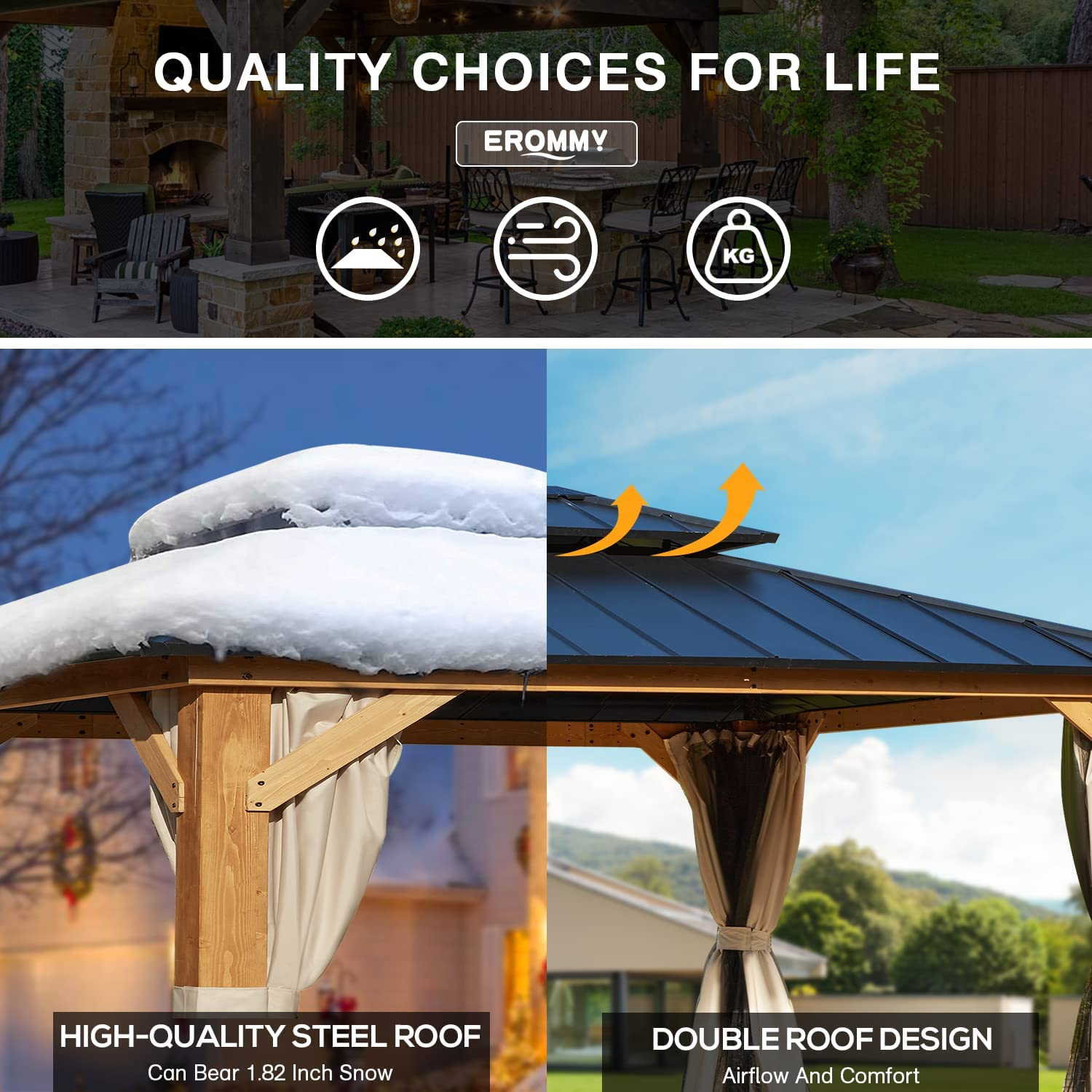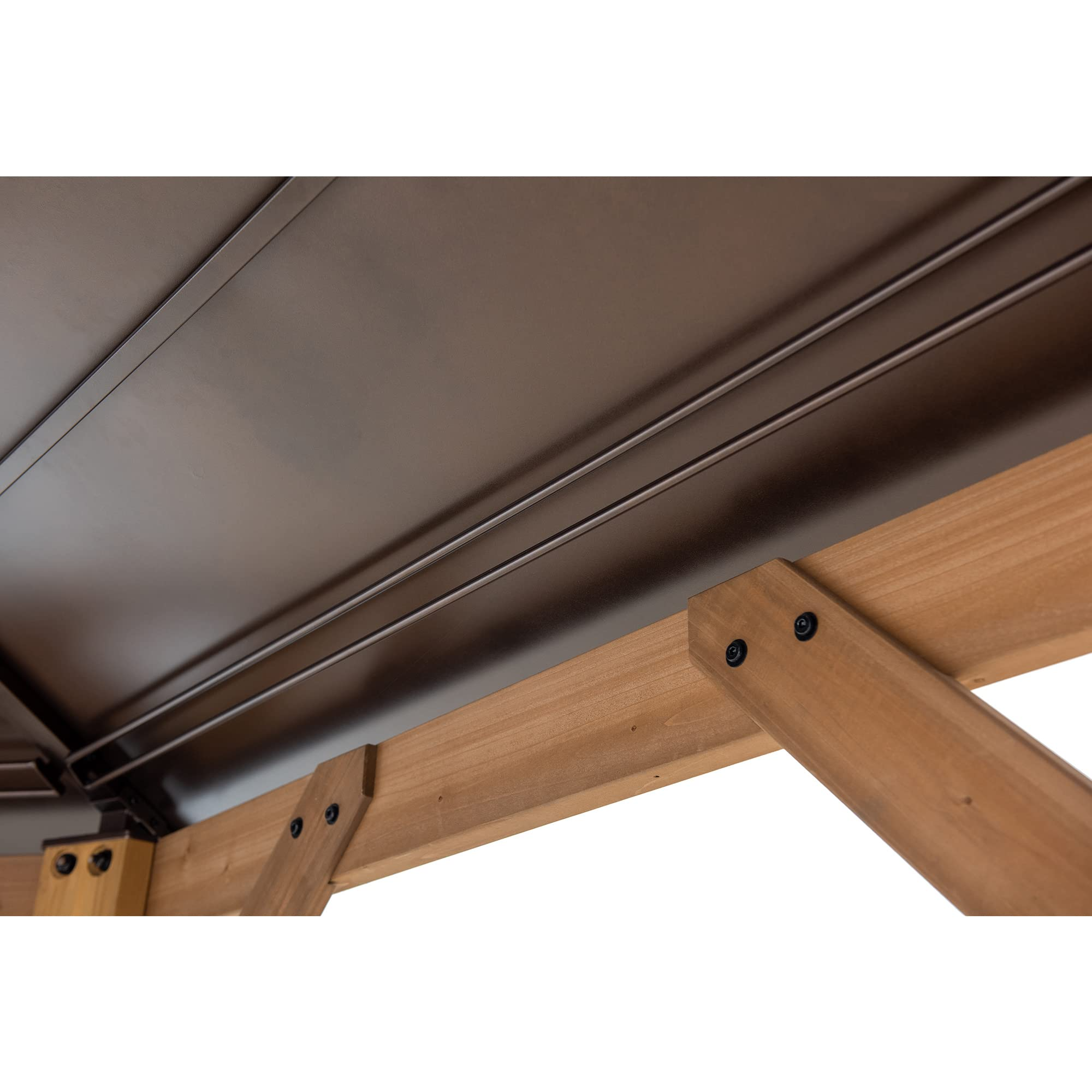 【Gazebo】13x13 Cedar Framed Octagon Wood Gazebo with Brown Double Tiered Steel Hardtop Roof & Ceiling Hook
