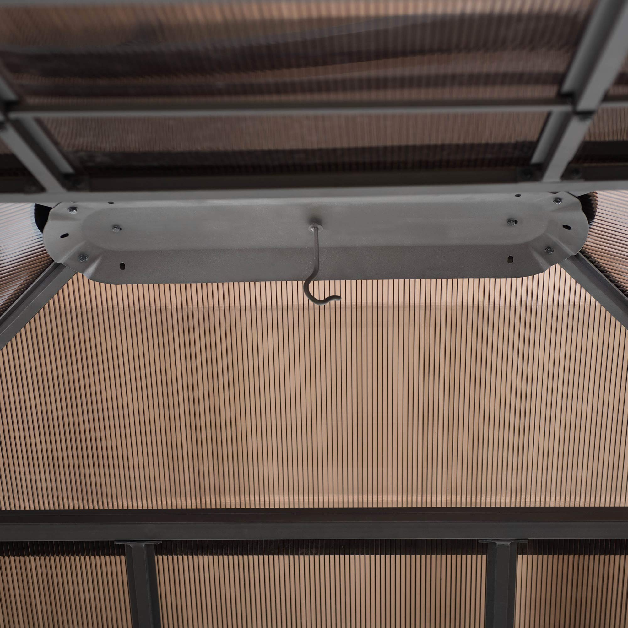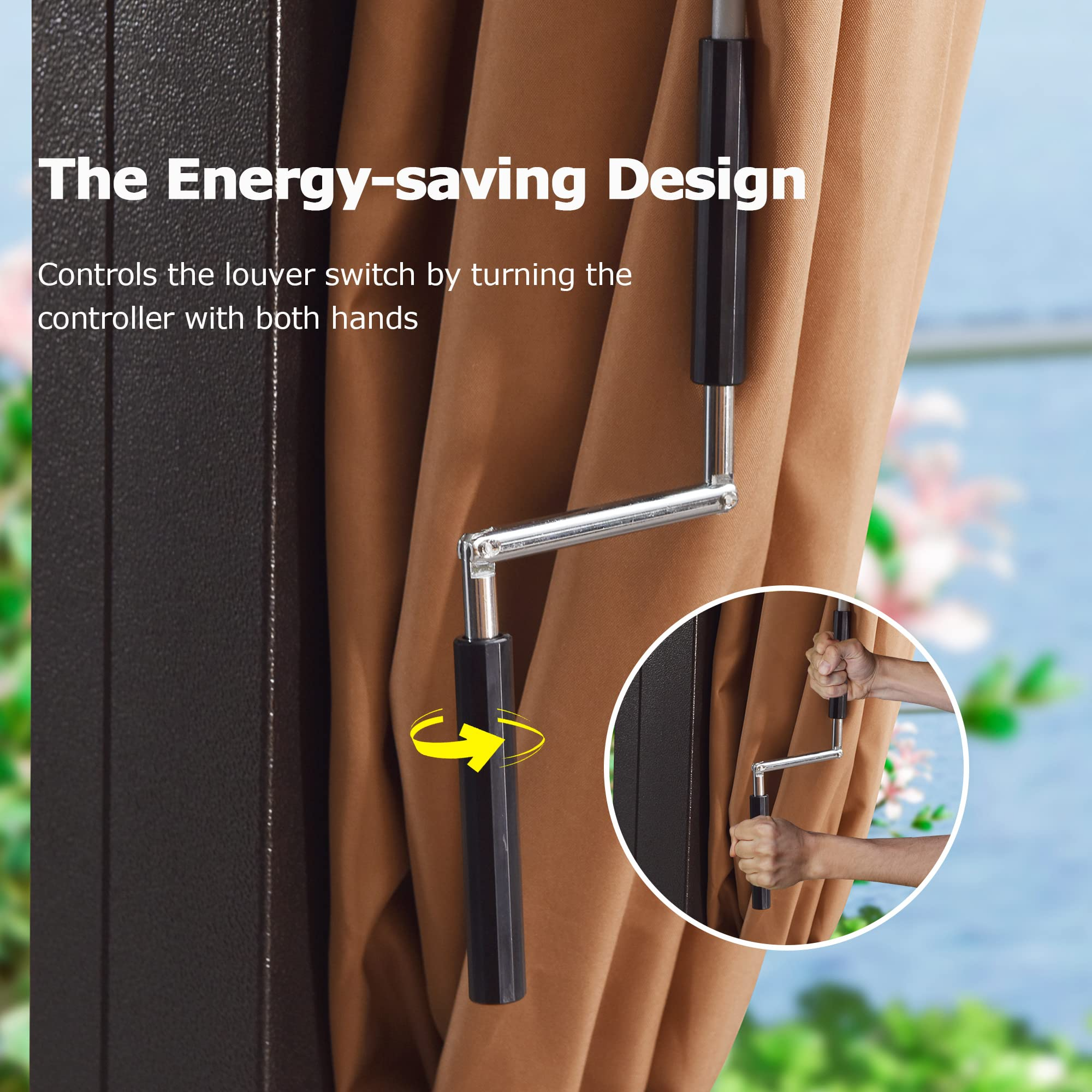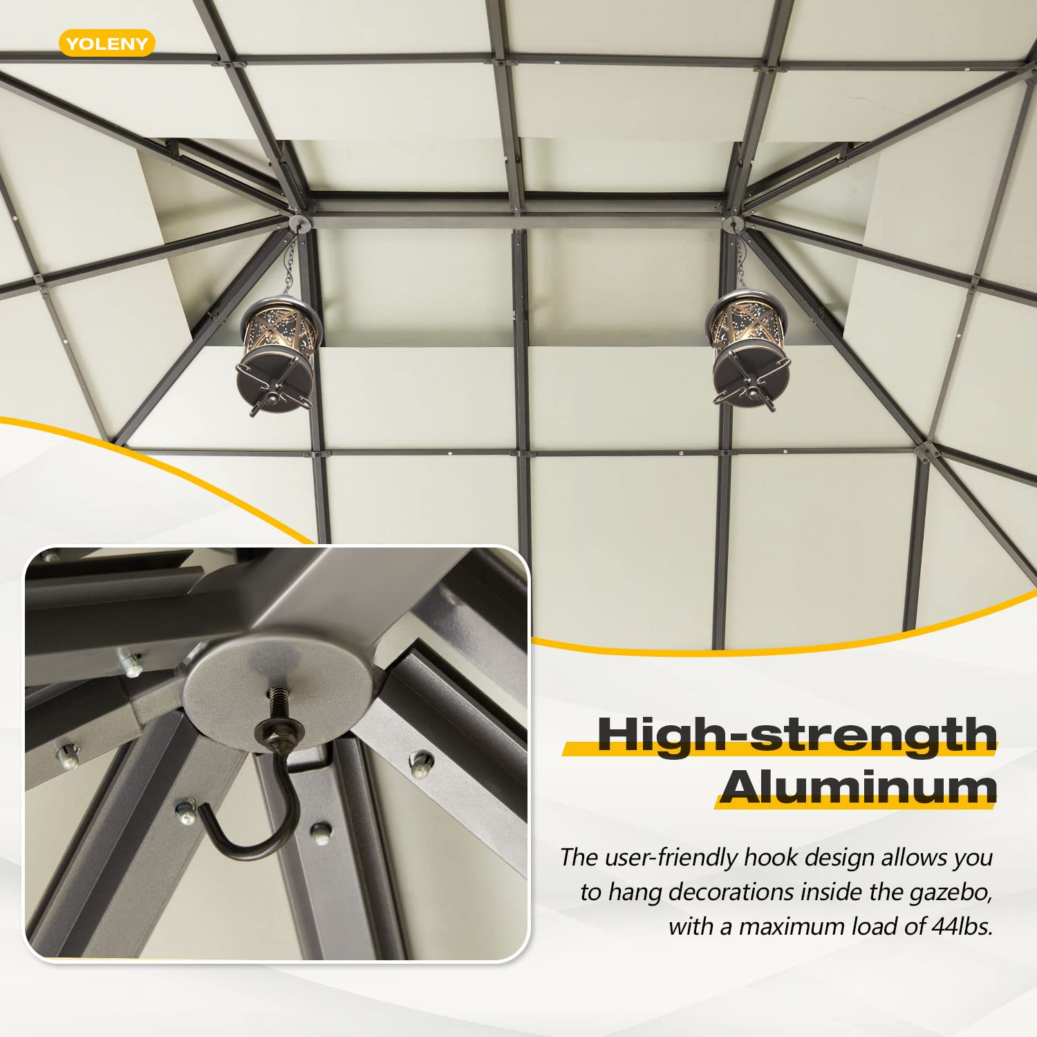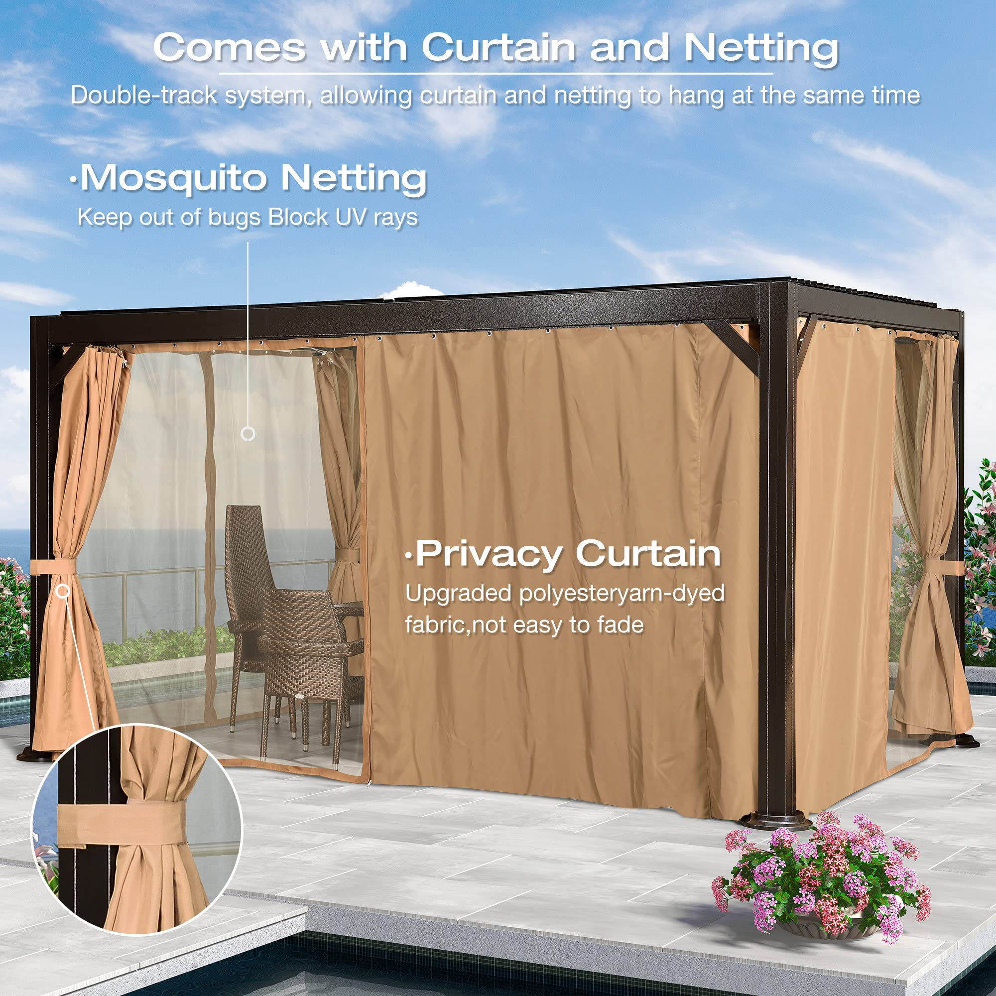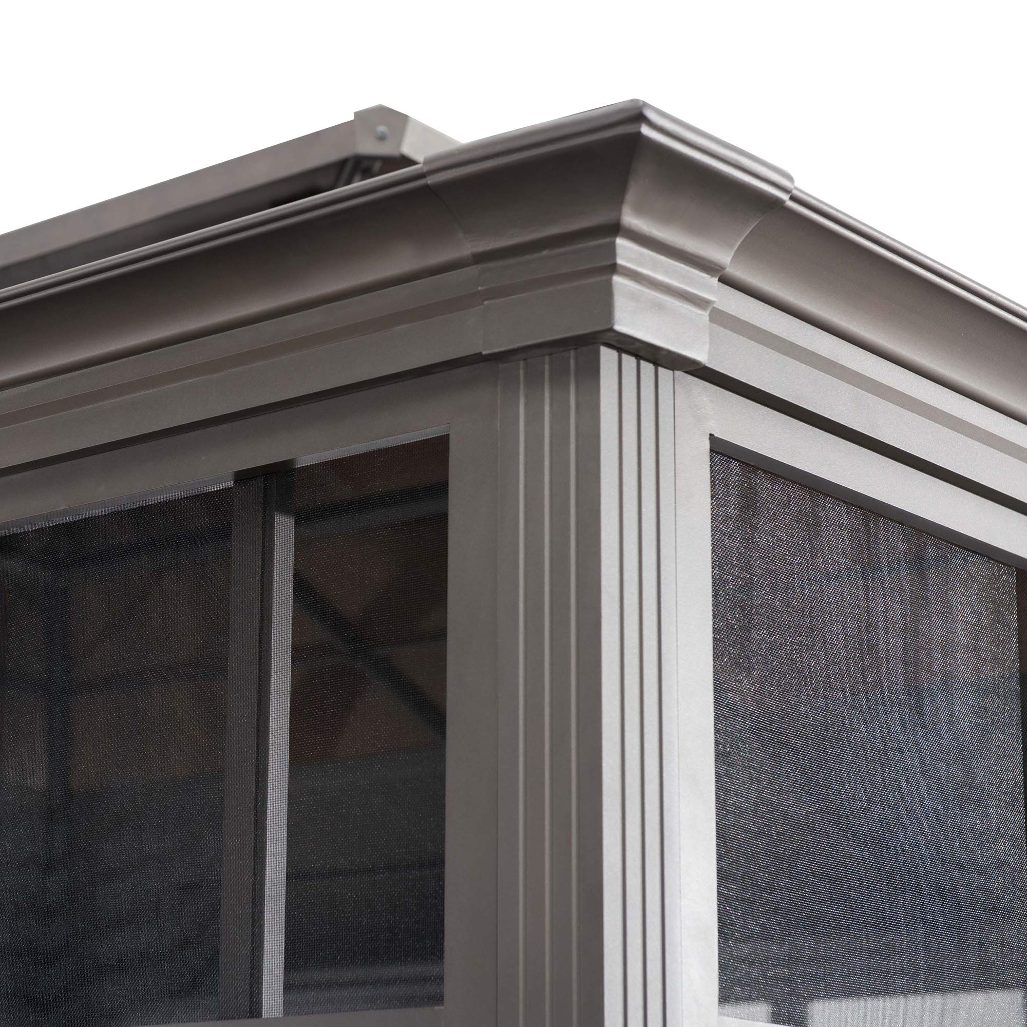 【Home&Garden】Outdoor Sunroom 12x14 ft. Steel Screenhouse with 2-Tier Hardtop Hot Tub Gazebo, Brown