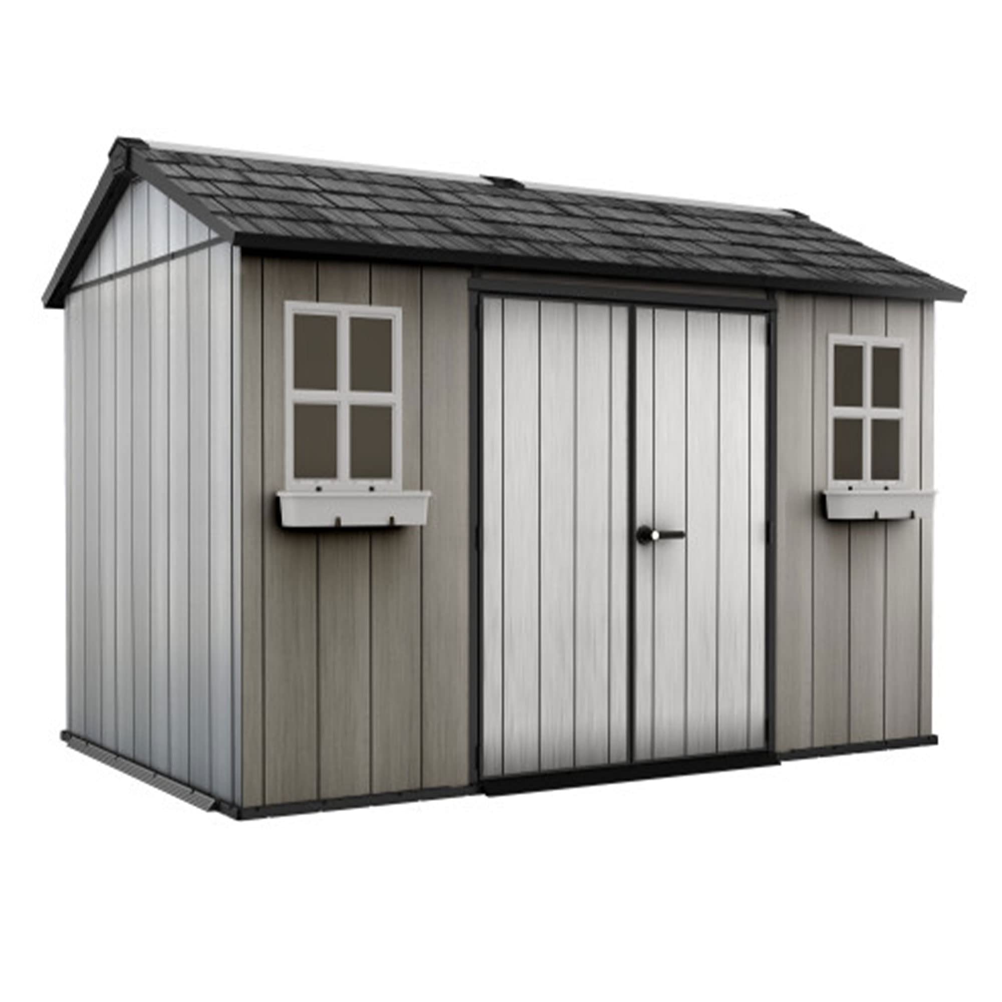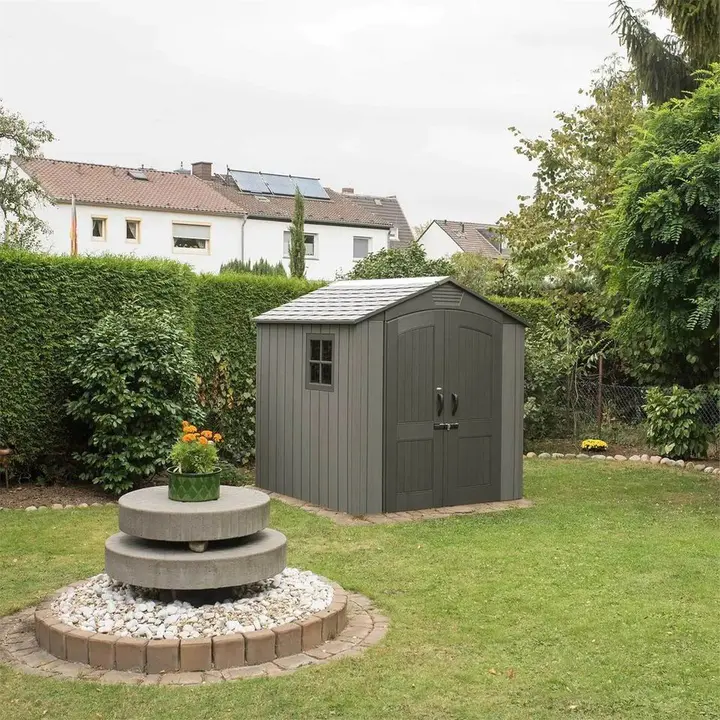 【Storage Shed】 8' x 6' Plastic Garden Shed with Foundation Kit - Ivory - 15 Years Warranty