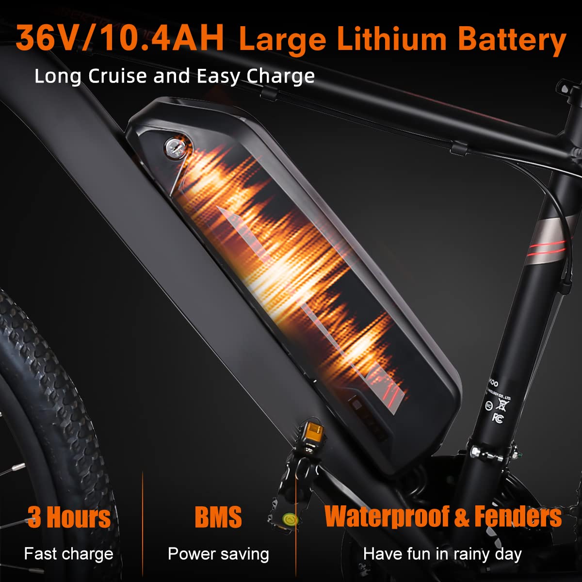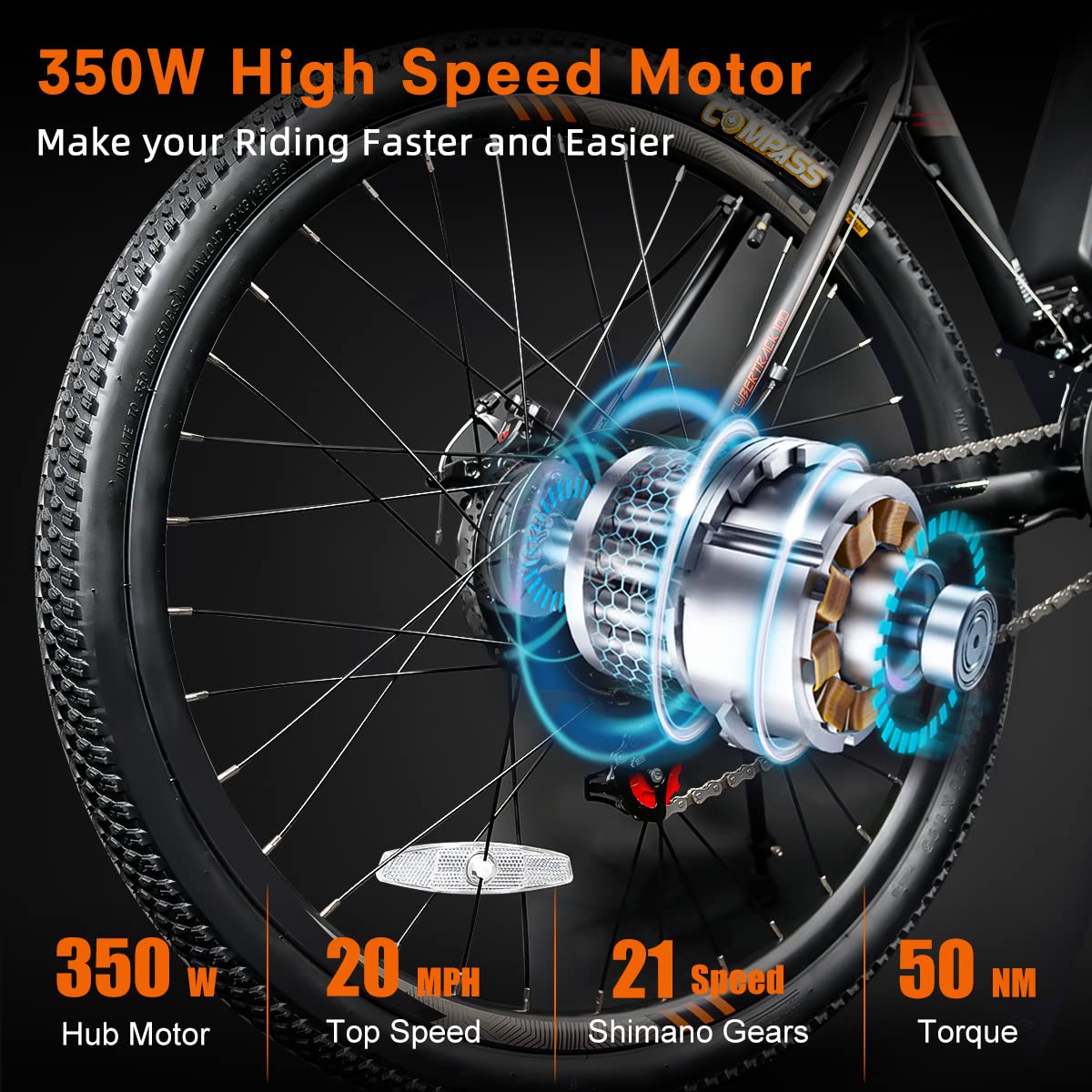 【Sports&Outdoors】26" Electric Bike for Adults 350W 36V/10.4AH Removable Battery, Mountain Ebike