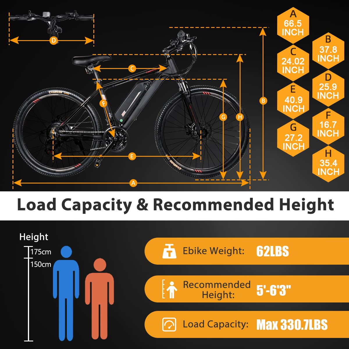 【Sports&Outdoors】26" Electric Bike with 36V 12.5Ah Removable Lithium-Ion Battery 350W Powerful Motor