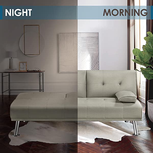 YAHEETECH Linen Fabric Modern Sofa Bed Sectional Couch Bed Folding Recliner Sleeper Reversible Loveseat Convertible Daybed, 2 Cup Holders, 3 Angles, 772lb Capacity, Removable Armrests, Dark Gray