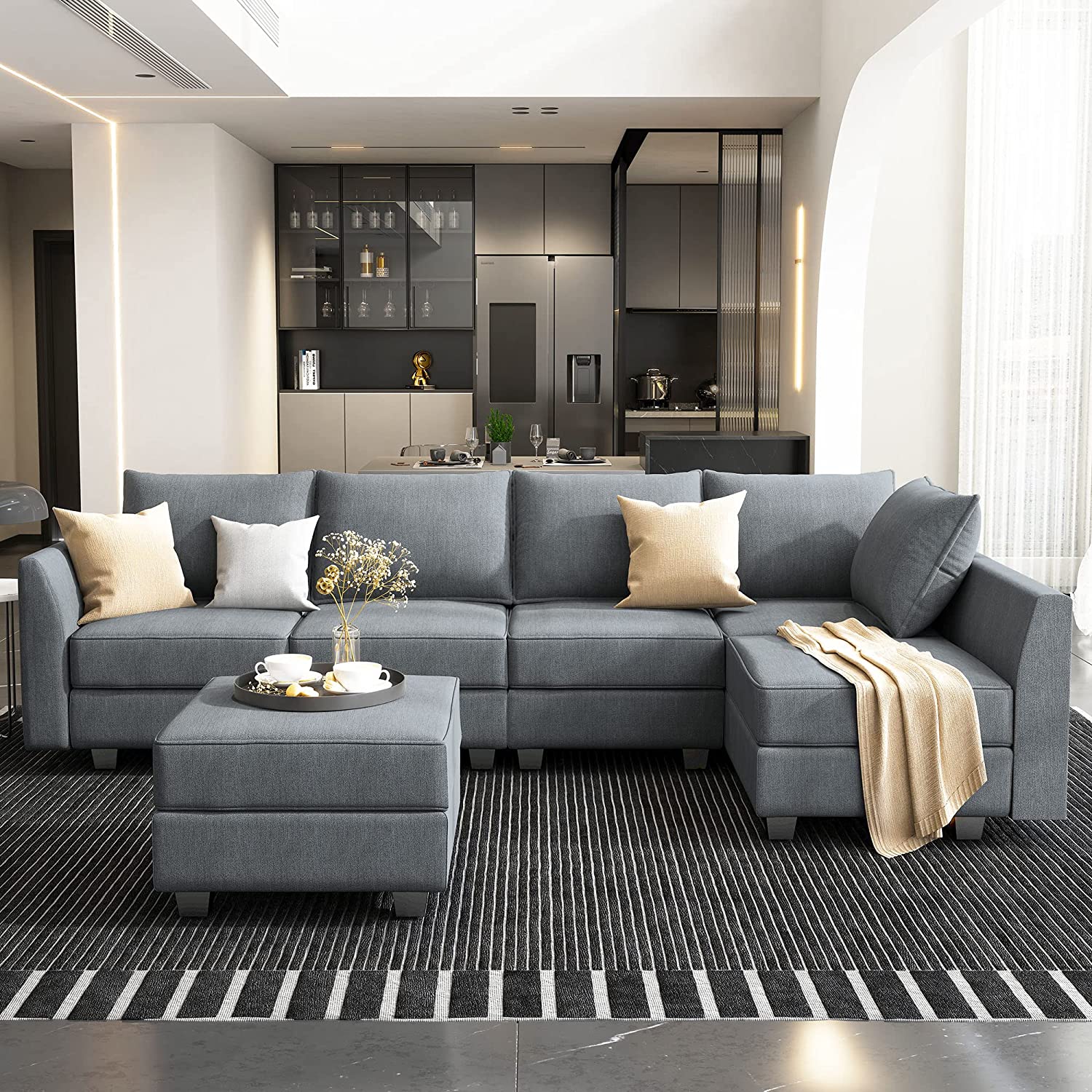 Sectional Sofa Couch with Ottoman Living Room Corner Couch 6 Seat Modular L Shaped Couch for Home Office