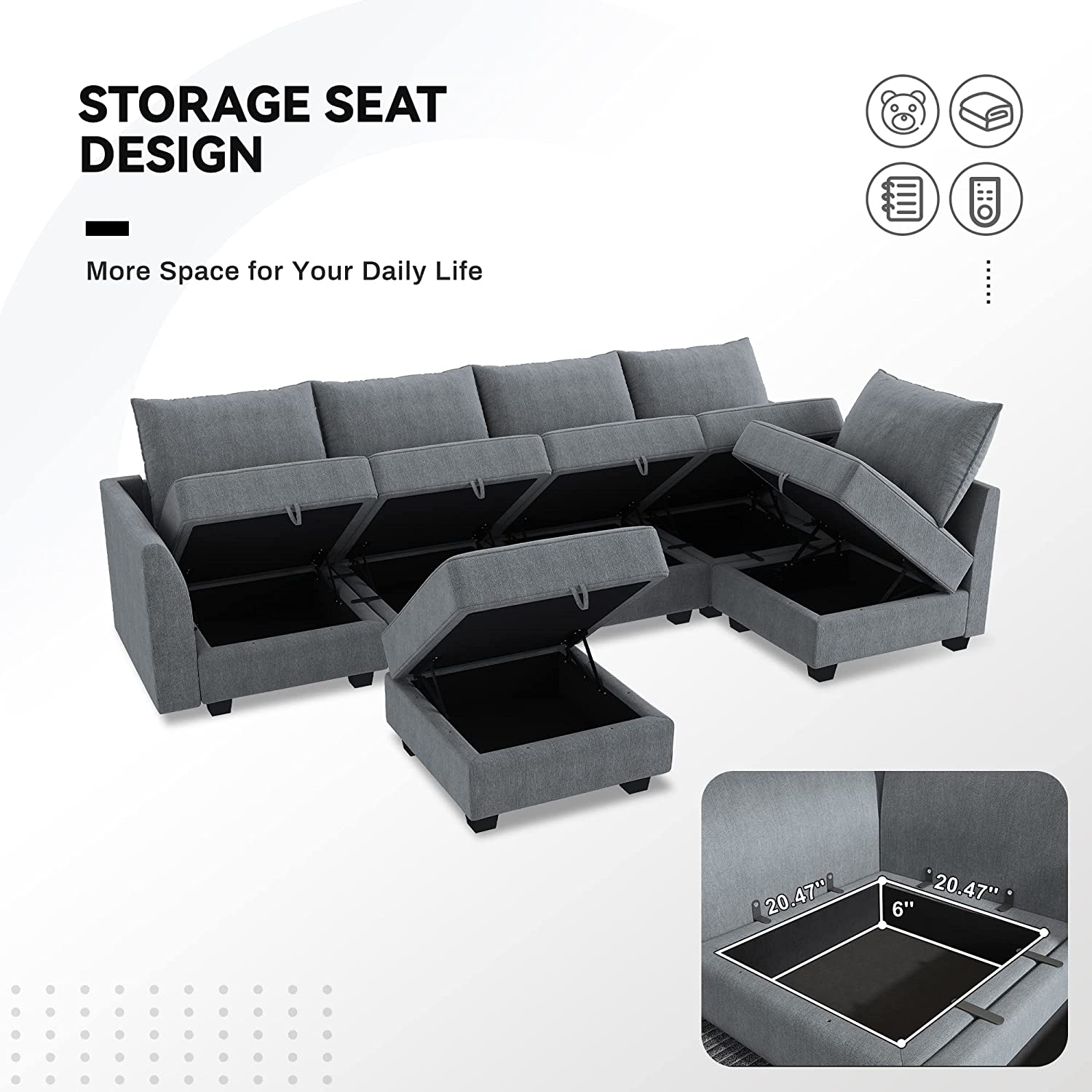 HONBAY Convertible Sectional Sofa U Shaped Couch with Modern Fabric Modular Sofa Couch with Chaise