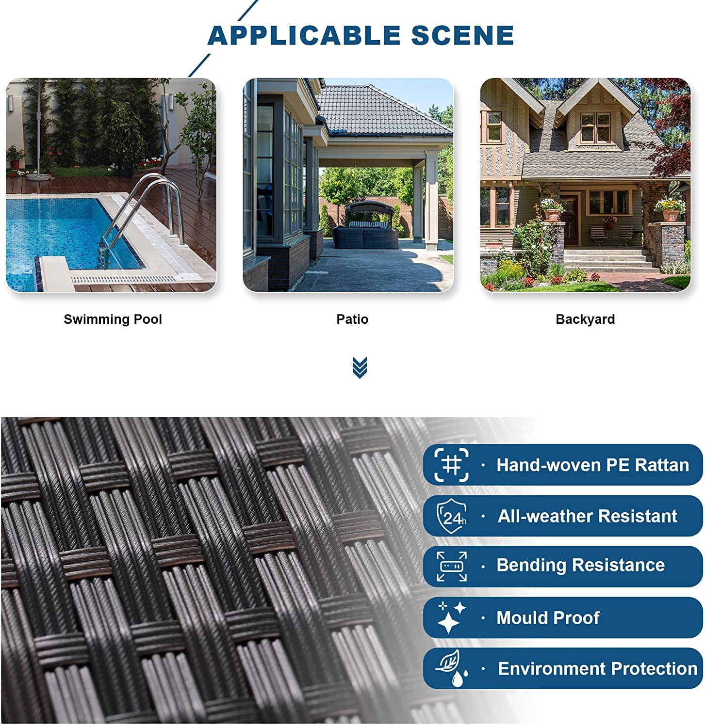 【Furniture】9 PCS Patio Outdoor Furniture Sets, Sectional Manual Weaving Wicker Conversation Sofa Set