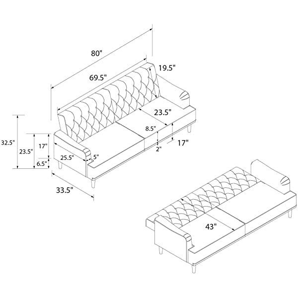 LifeStyle Solutions Grayson Love Seats, 57.87"x32"x32.68", Black