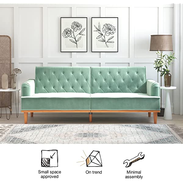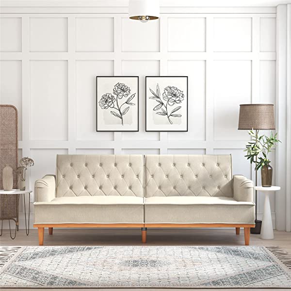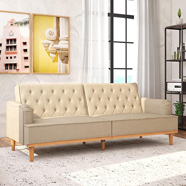 Mr. Kate Stella Vintage Convertible Sofa Bed Futon, Tan Linen