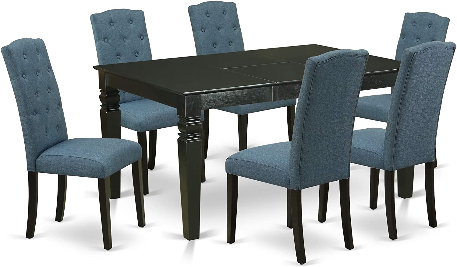East West Furniture CAAB7-OAK-55 7Pc Rectangle 60" Dining Table And 6 Parson Chair With Oak Leg And Pu Leather Color Oasis, 7 Pieces