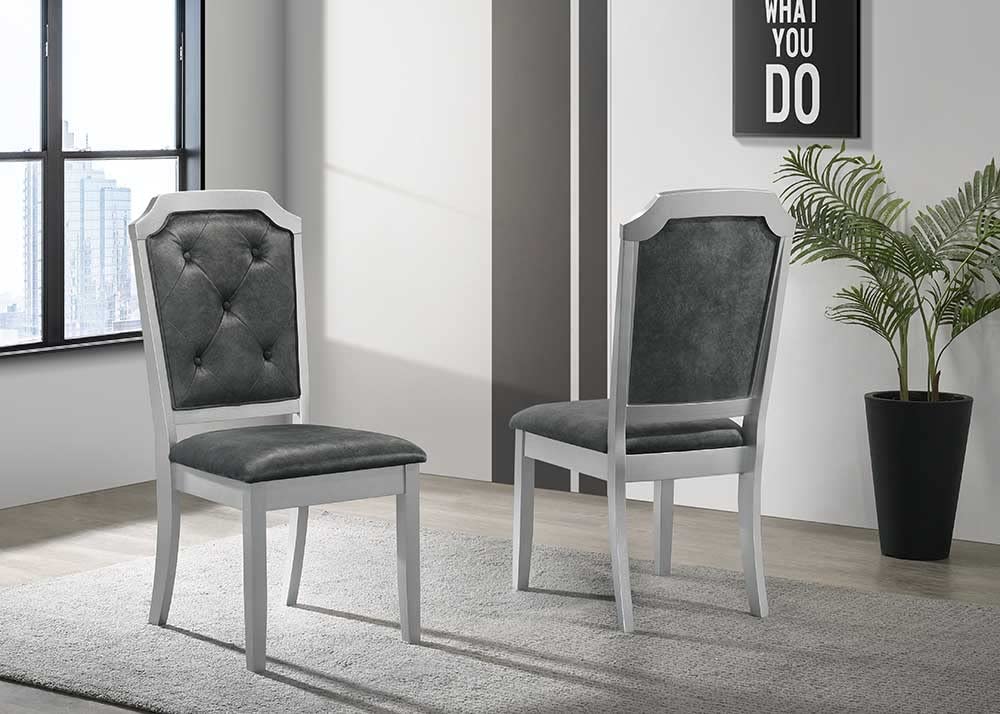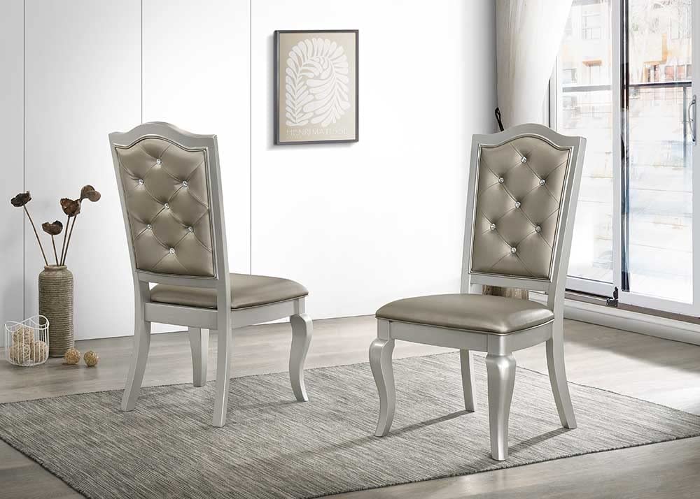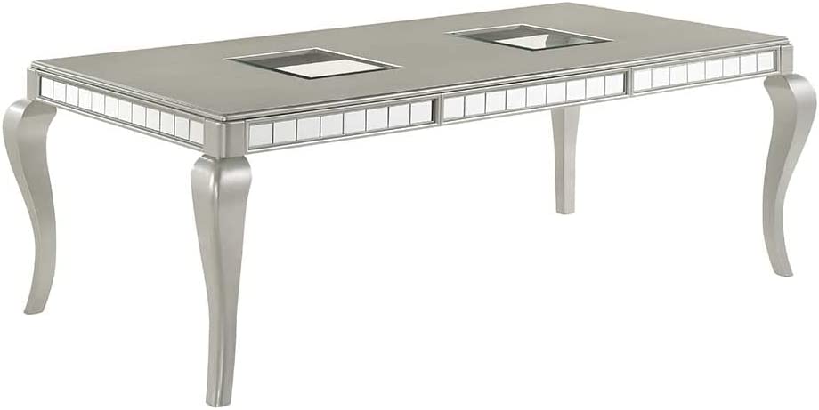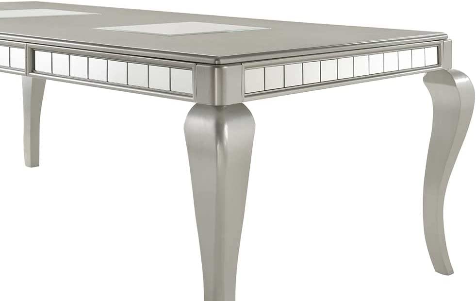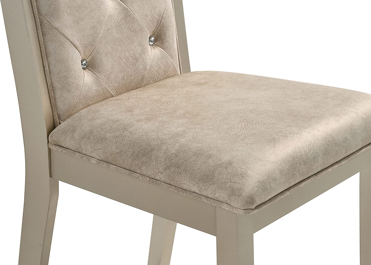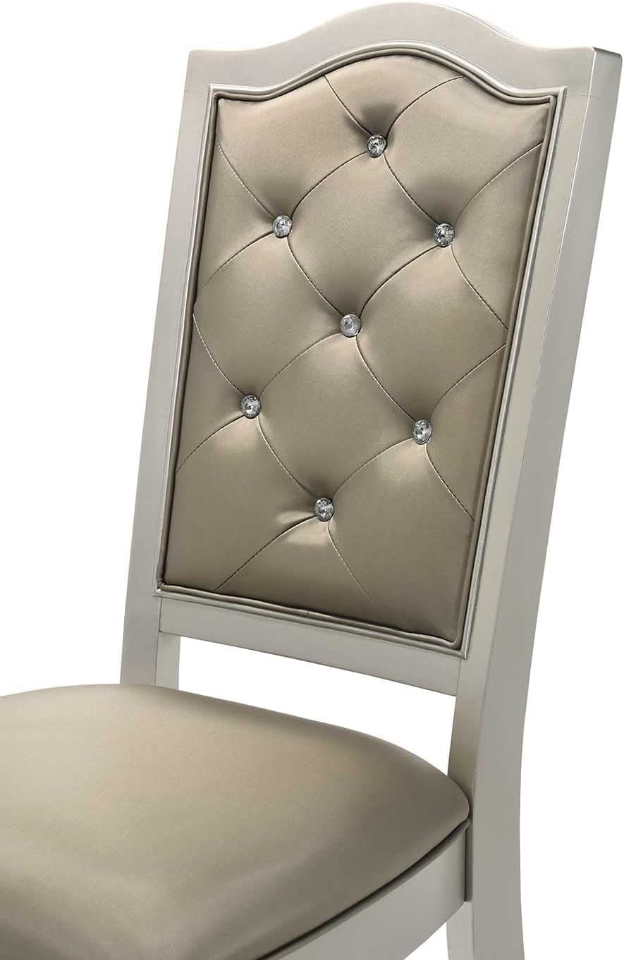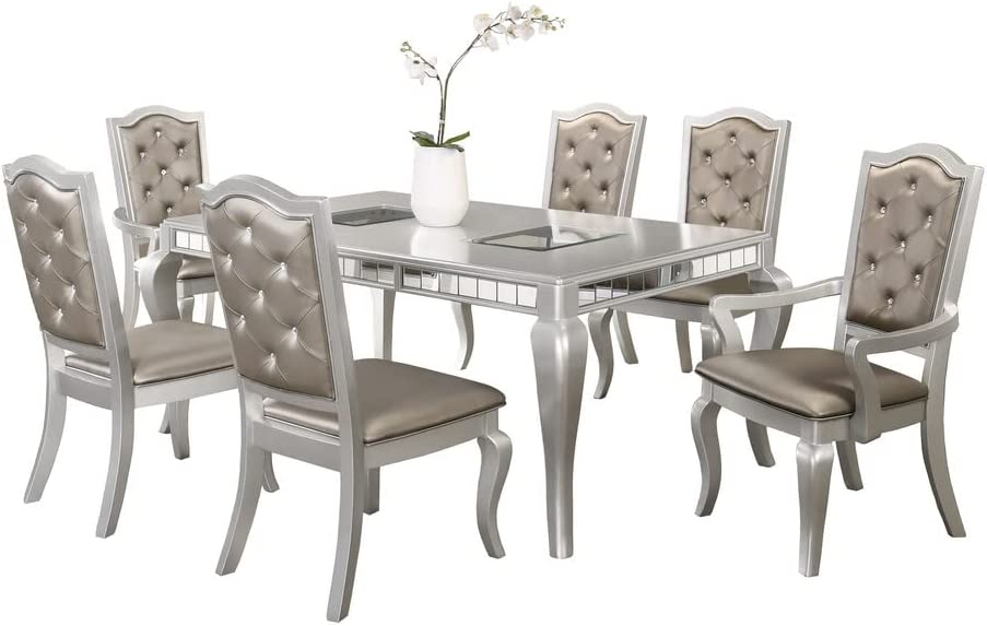Liveasy Furniture Dining Table Set for 6, Kitchen & Dining Room Sets with Button Tufted Upholstered Chairs and Mirror Tile Edge (Champagne/Beige)