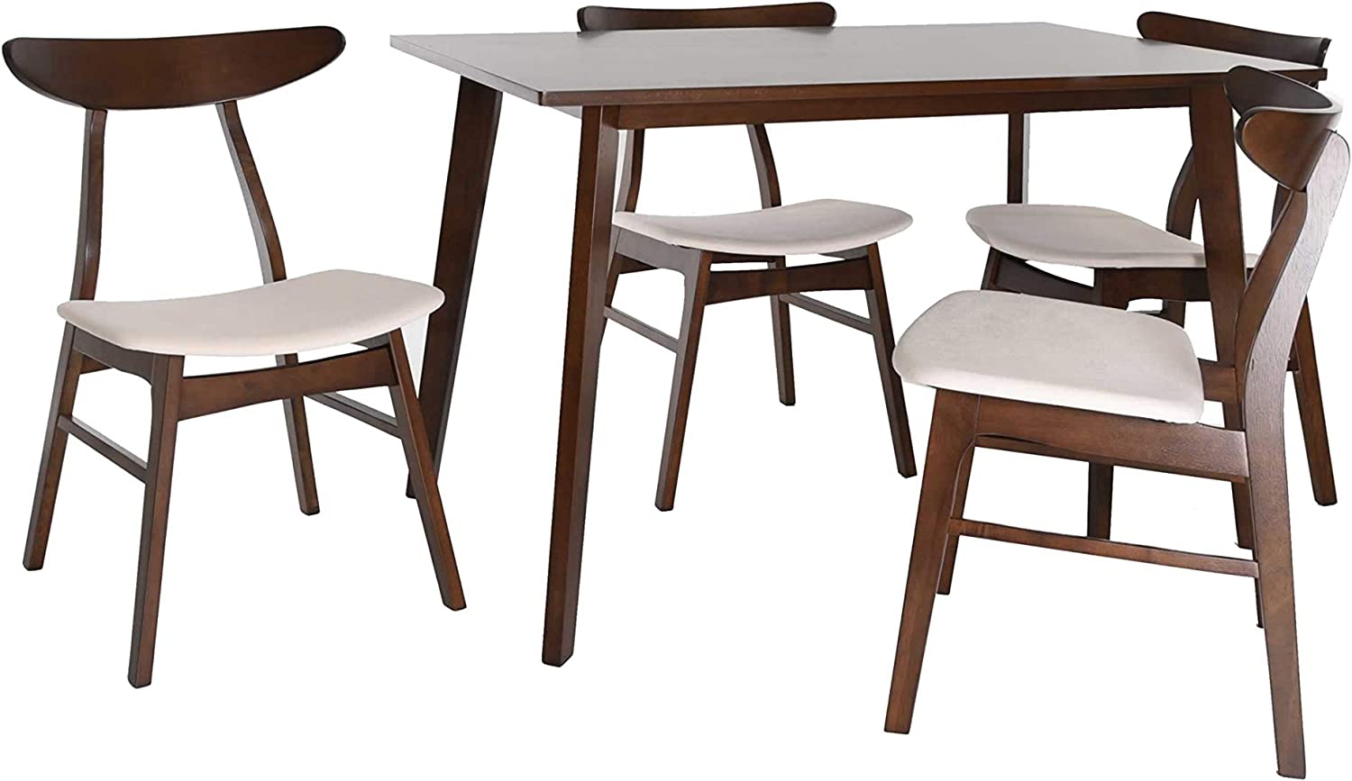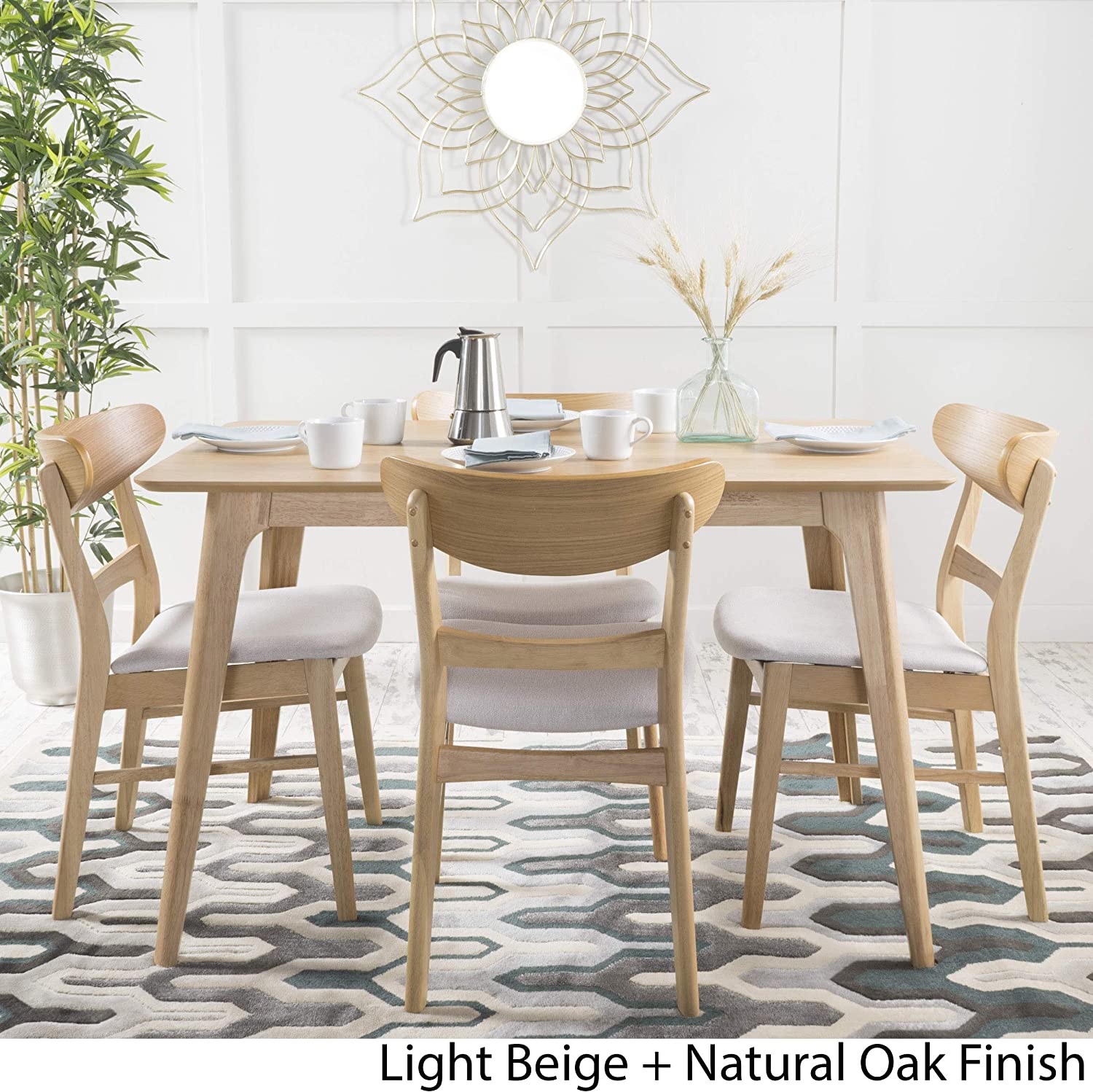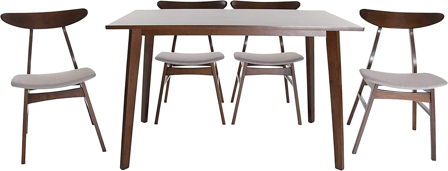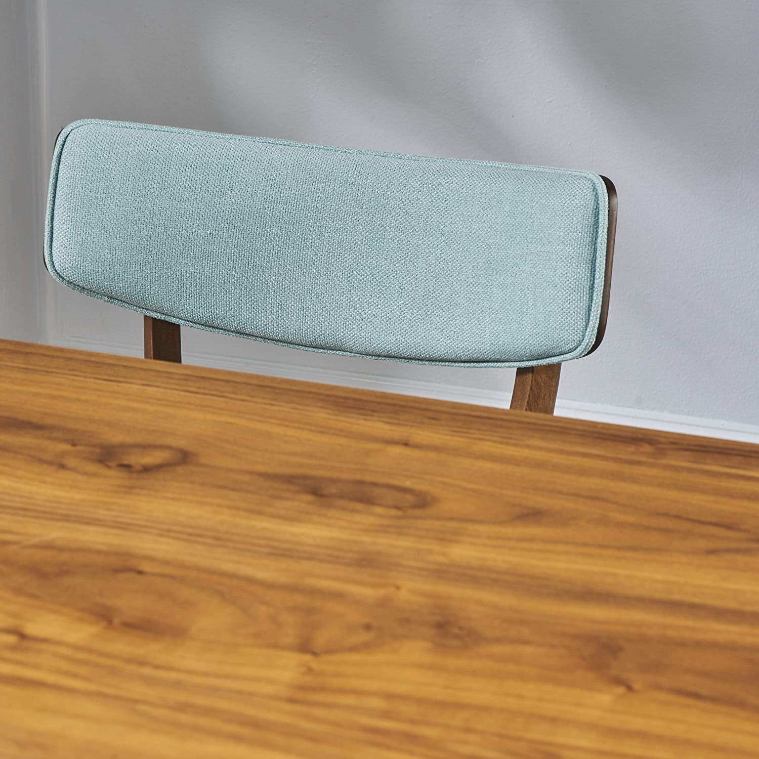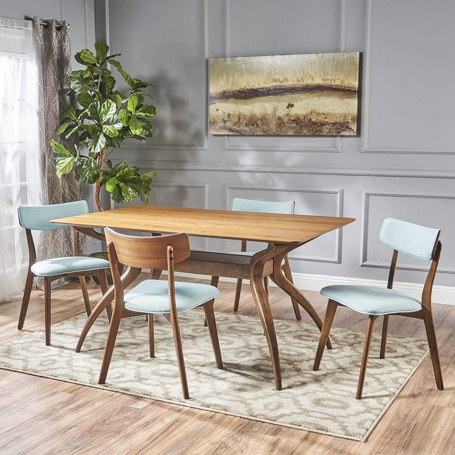 Christopher Knight Home Nissie Mid-Century Wood Dining Set with Fabric Chairs, 5-Pcs Set, Natural Walnut Finish / Mint