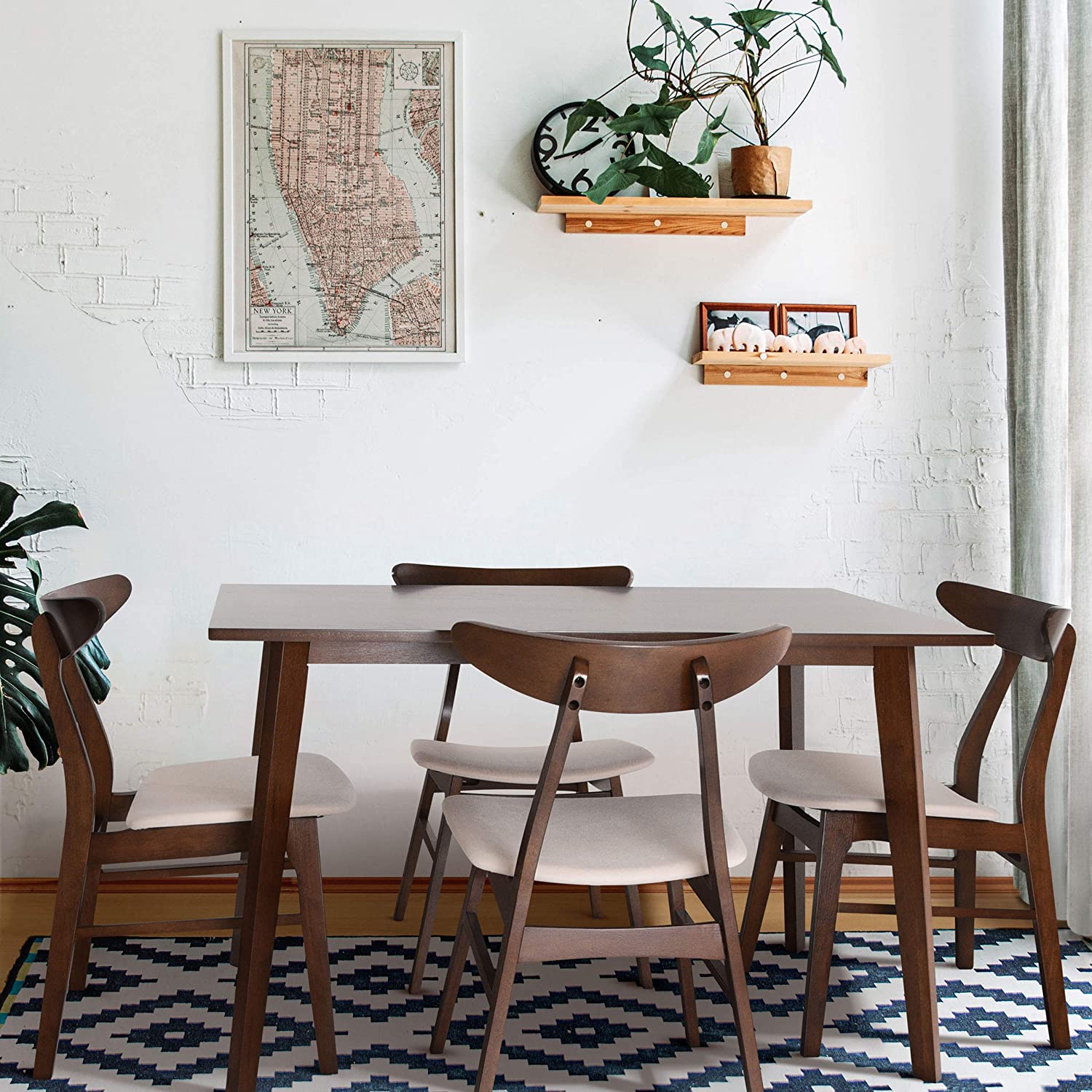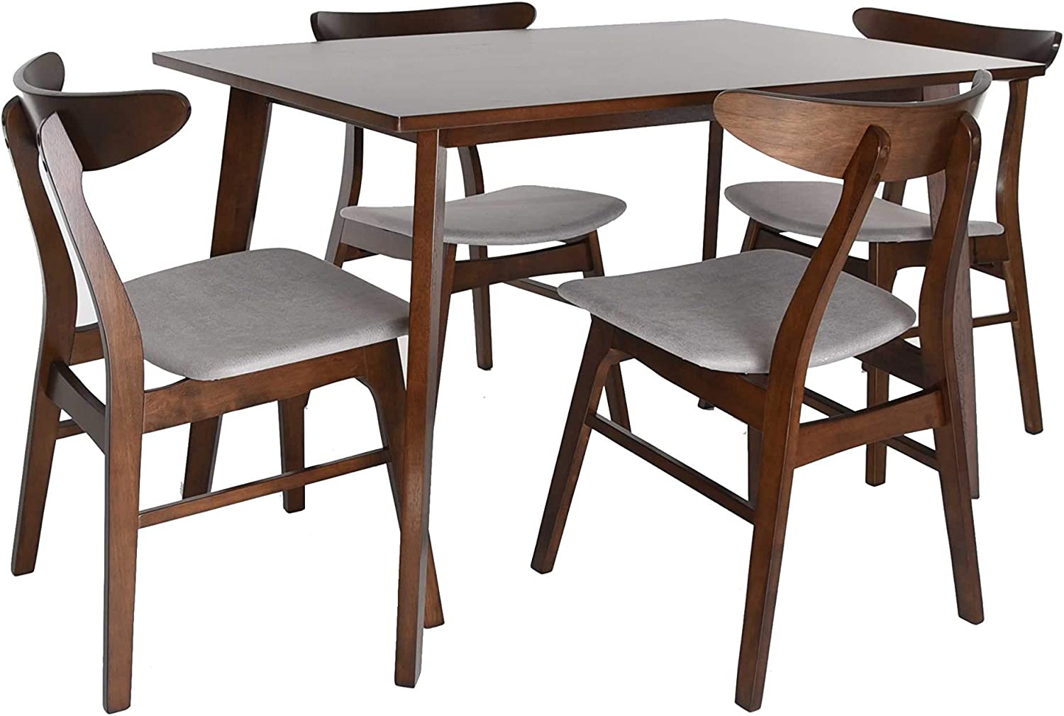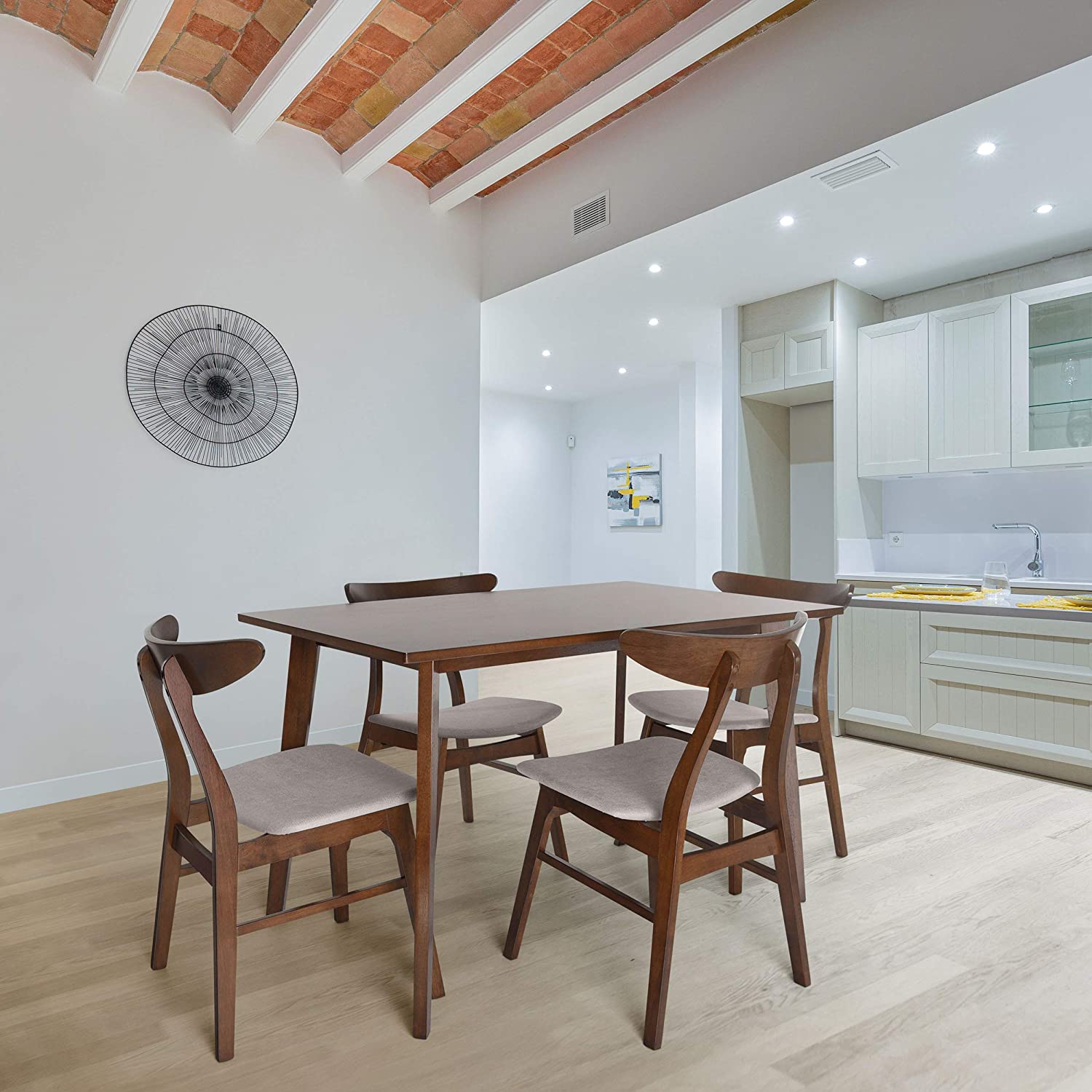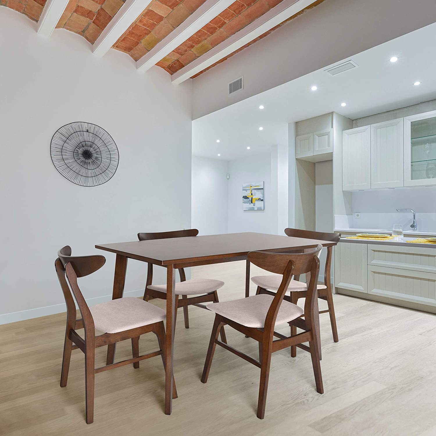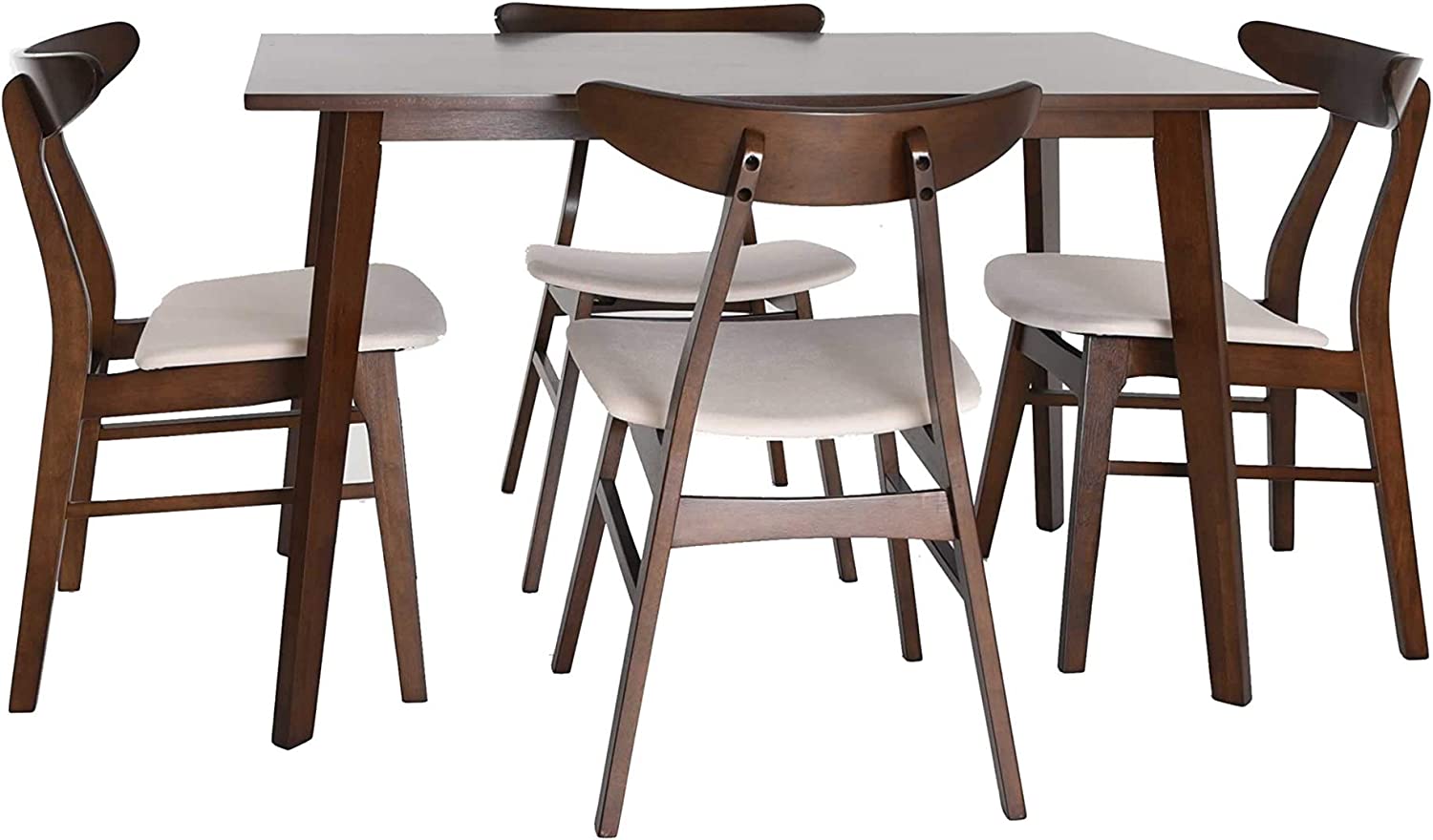 Christopher Knight Home Nissie Mid-Century Wood Dining Set with Fabric Chairs, 5-Pcs Set, Natural Walnut Finish / Mint