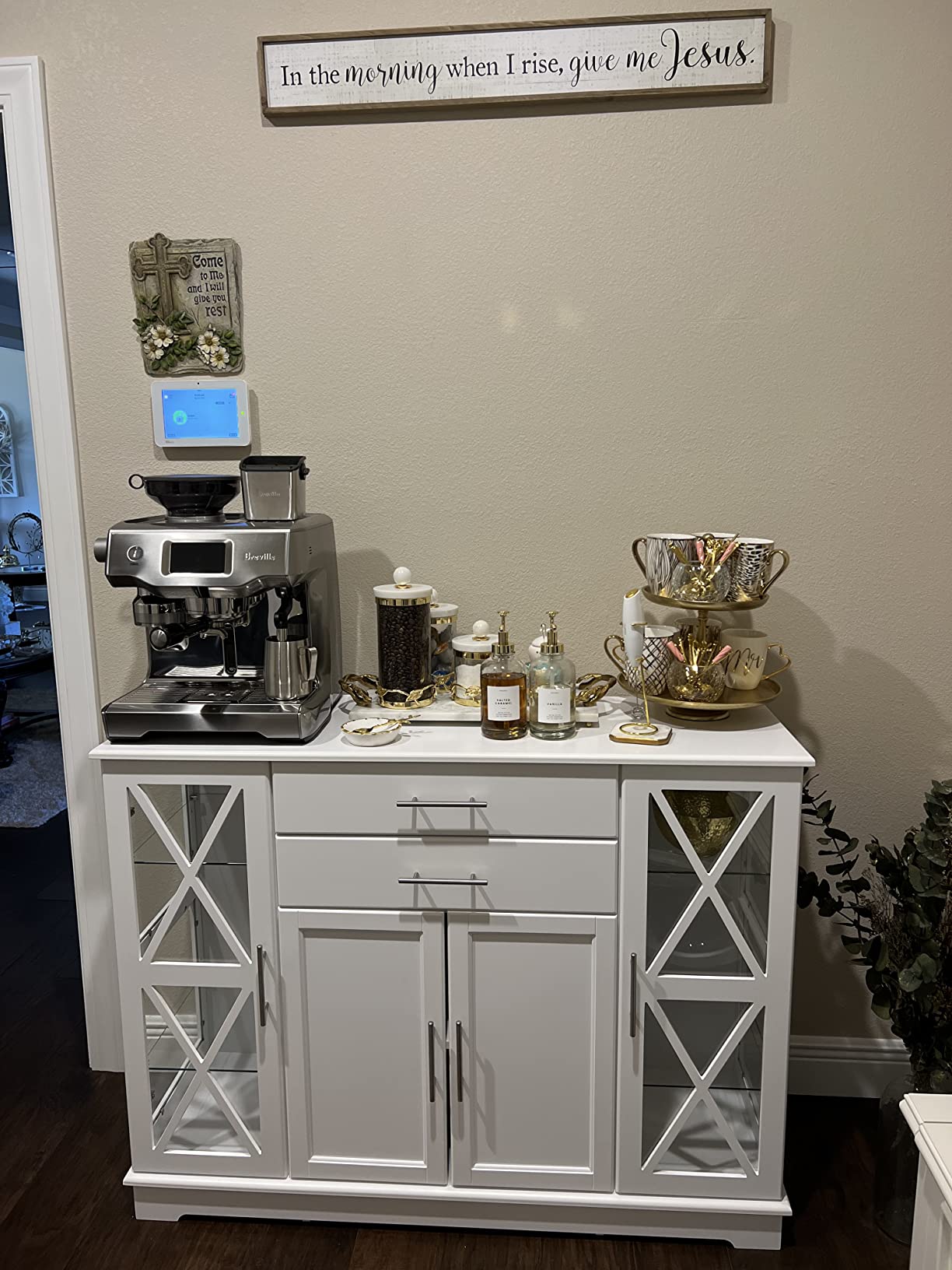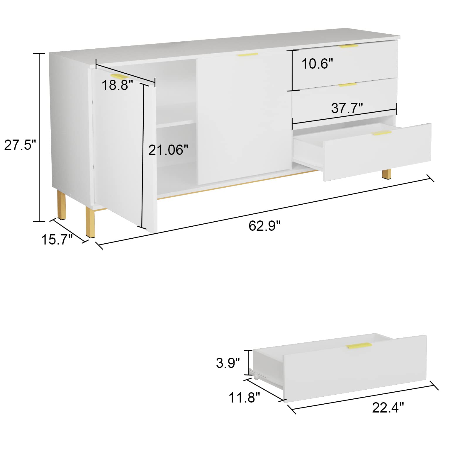 【Furniture】Buffet Sideboard with 3 Drawers & 2 Doors Storage, Buffet Cabinet Sideboard Credenza Coffee Bar Cabinet