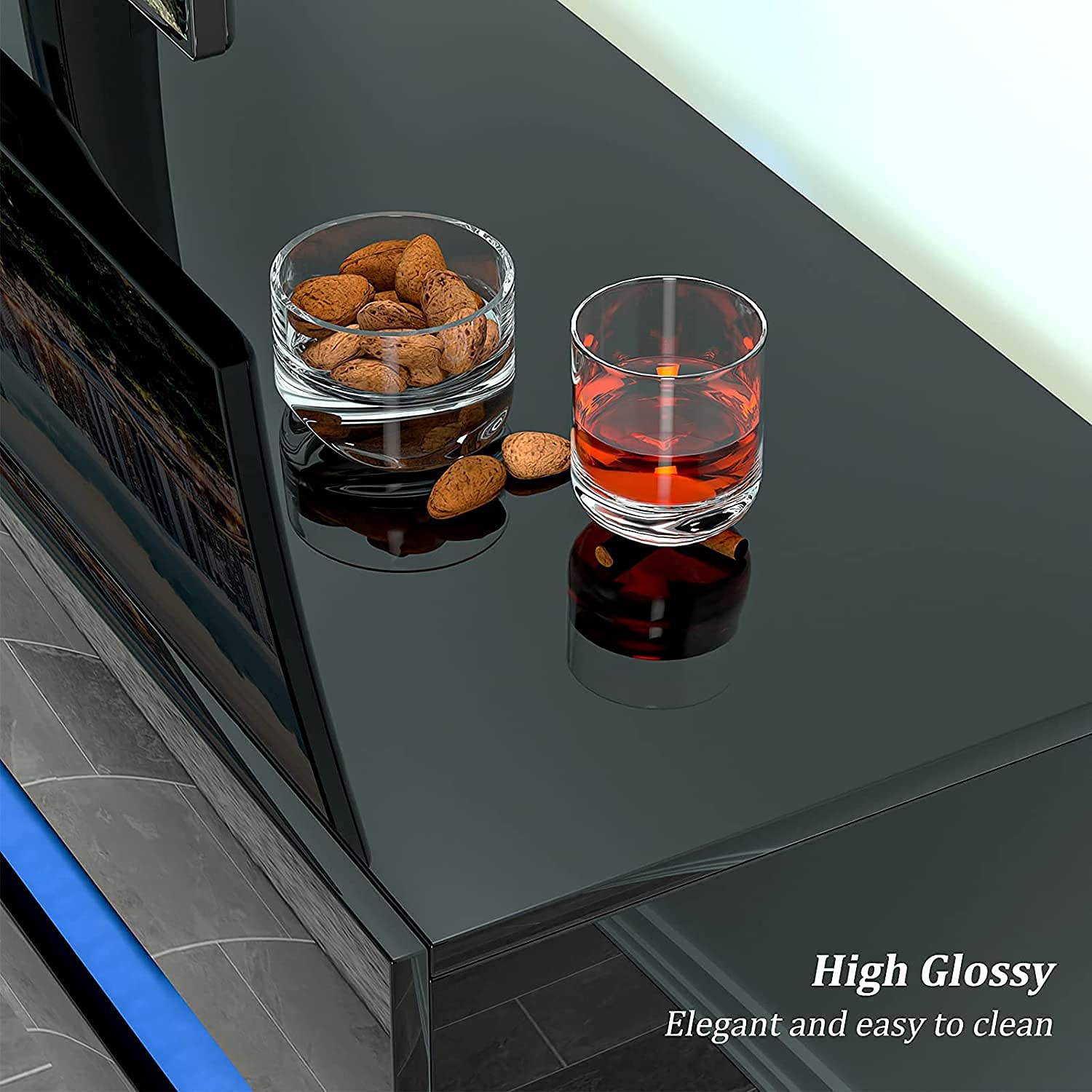 【Furniture】Modern Credenza Sideboard Buffet with Drawer & Pop-Up Doors, Buffet Sideboard Storage Cabinet
