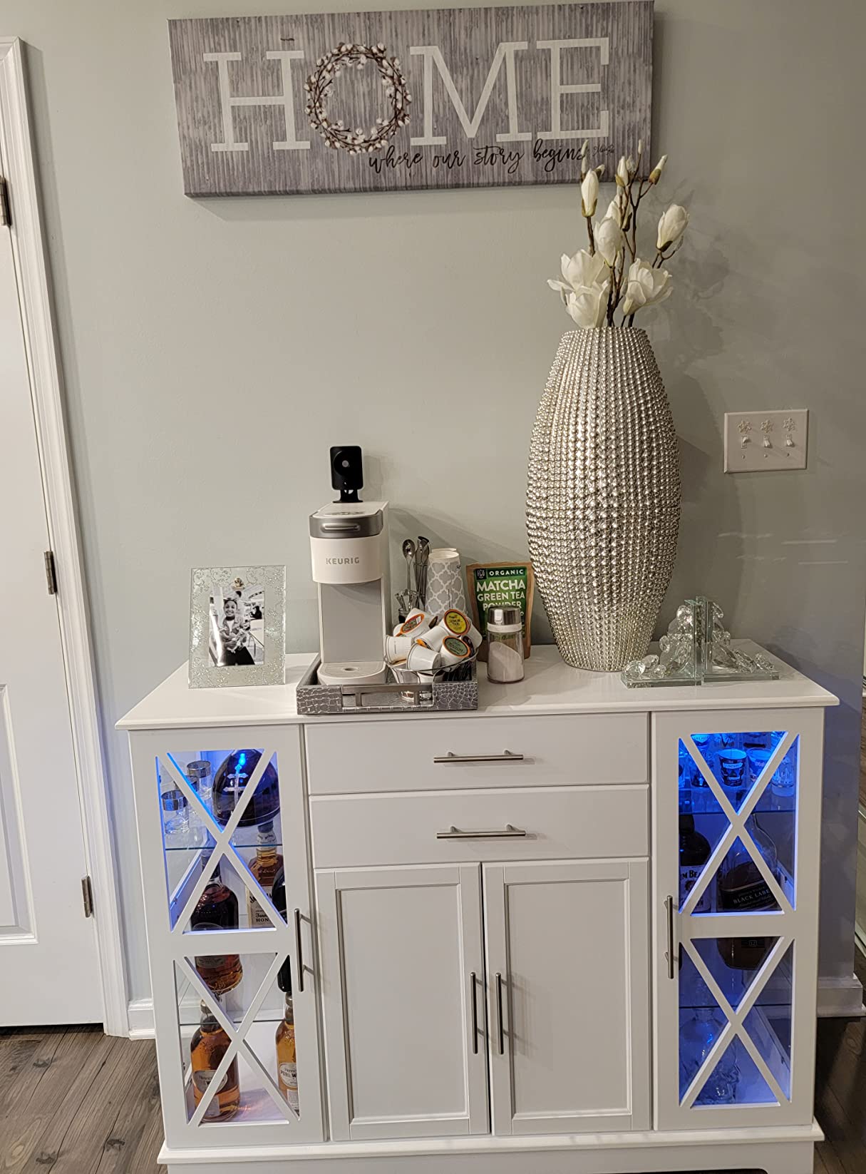 【Furniture】Modern Sideboard Cabinet Accent Buffet Storage Glass Doors Sideboard Cabinet Marble Top