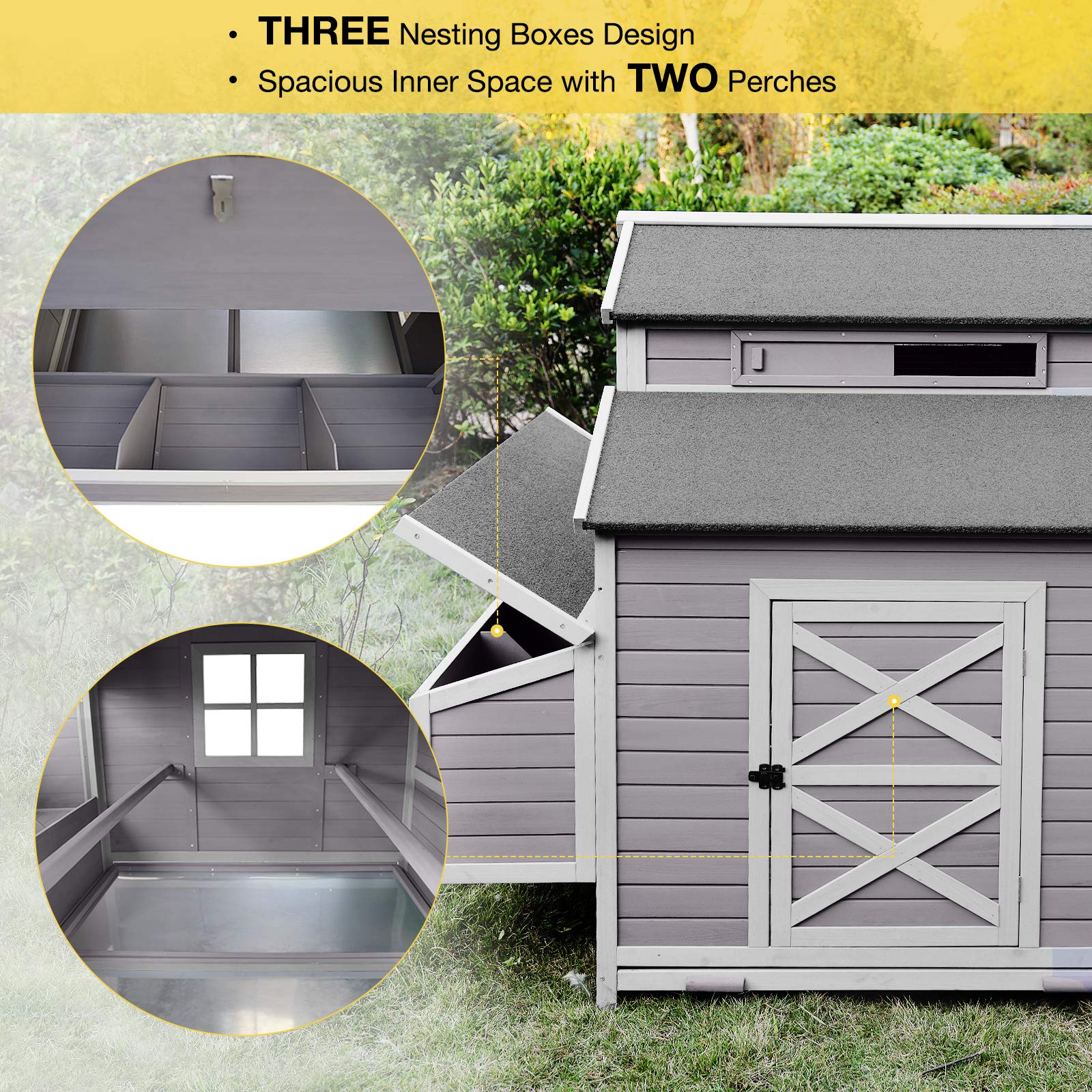【Pet】115in Super Large Outdoor Wooden Chicken Coop Hen House Poultry Cage for 8-10 Hens