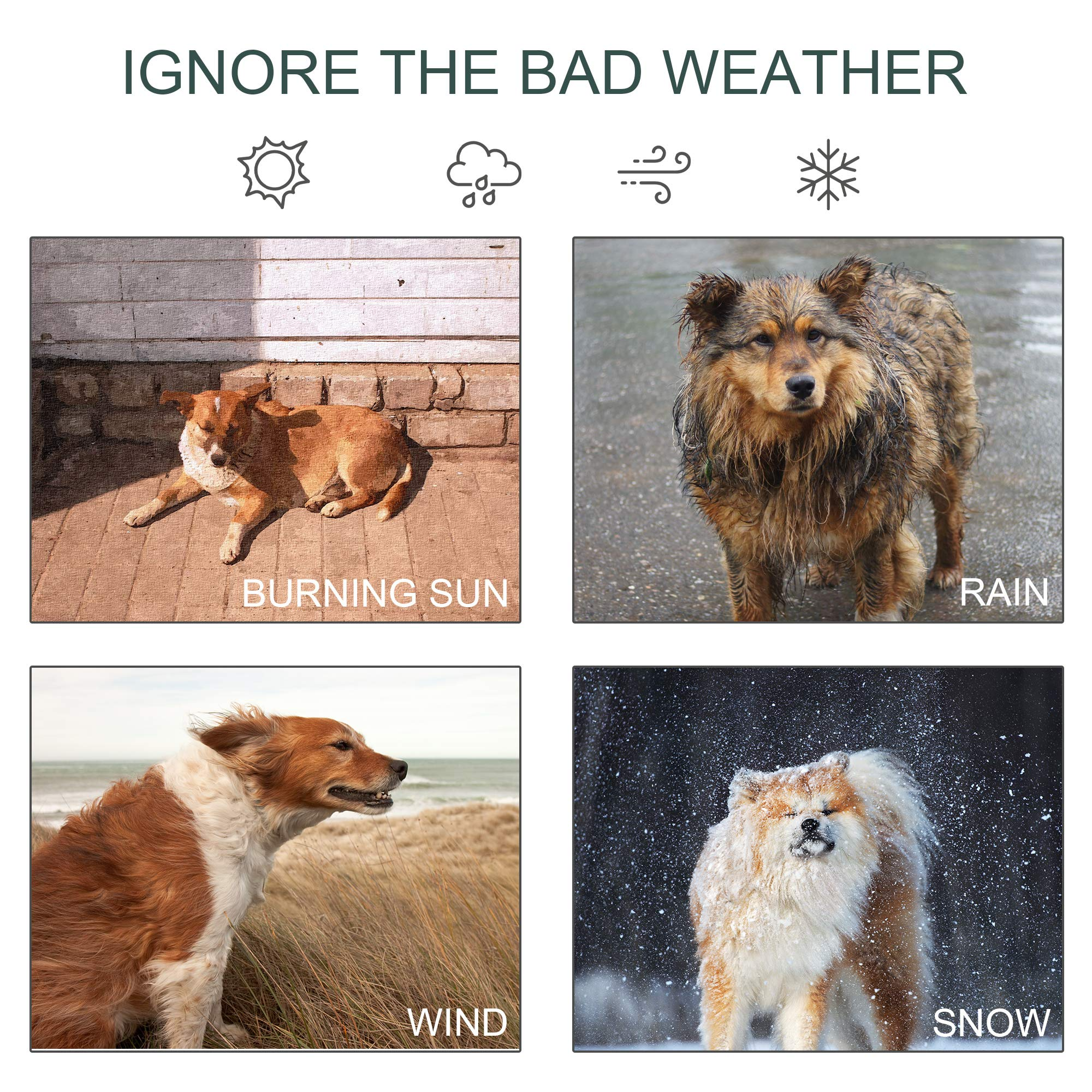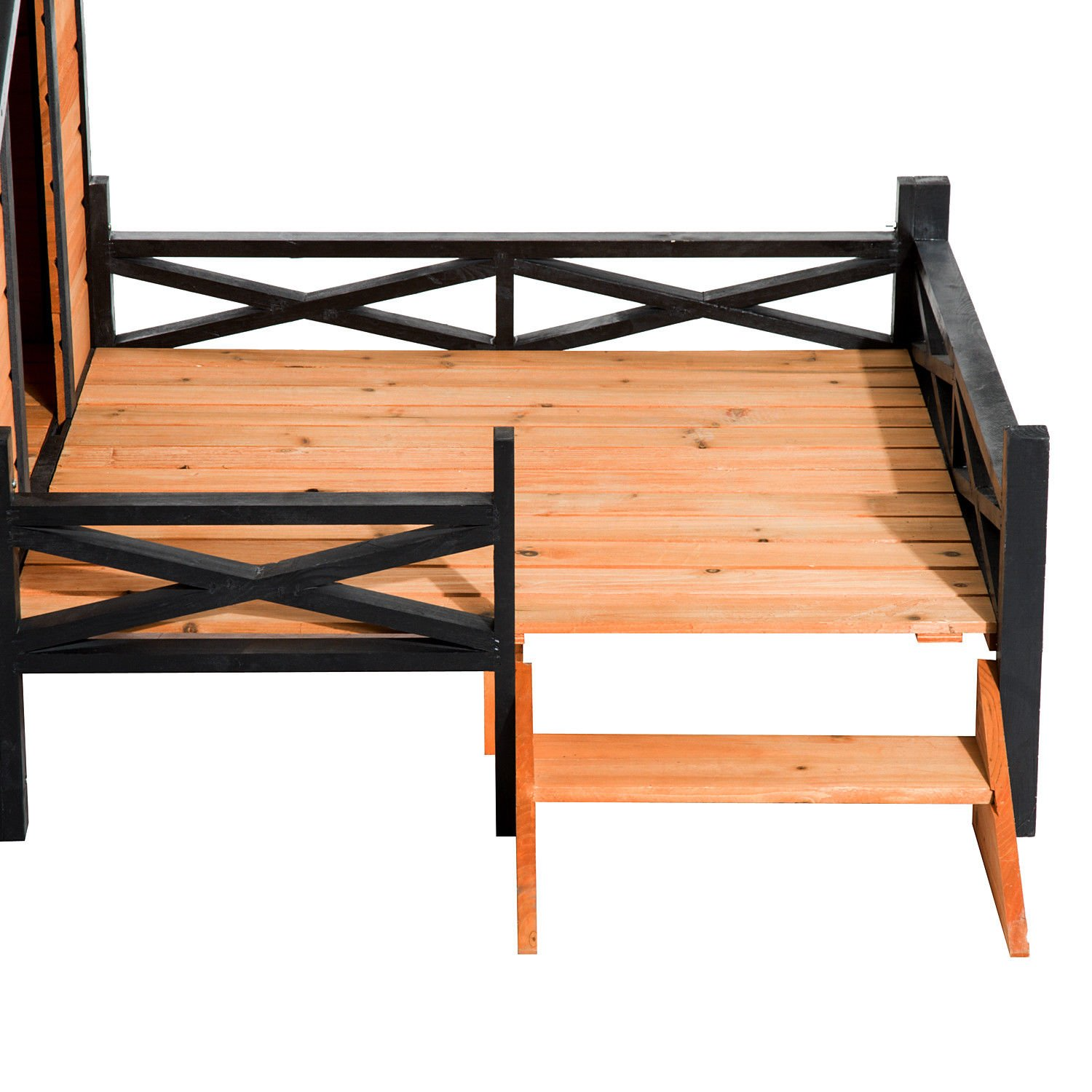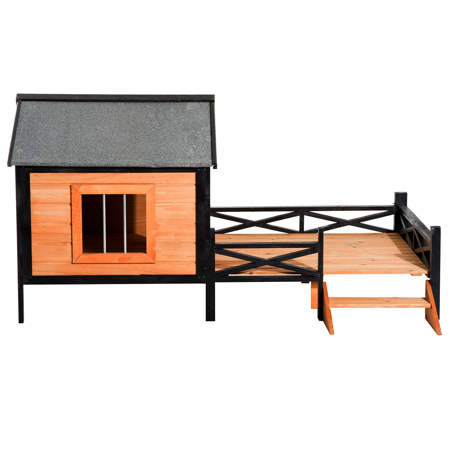 【Pet】Wooden Outdoor Dog House, Cabin-Style Pet House with Feeding Bowls, Asphalt Roof