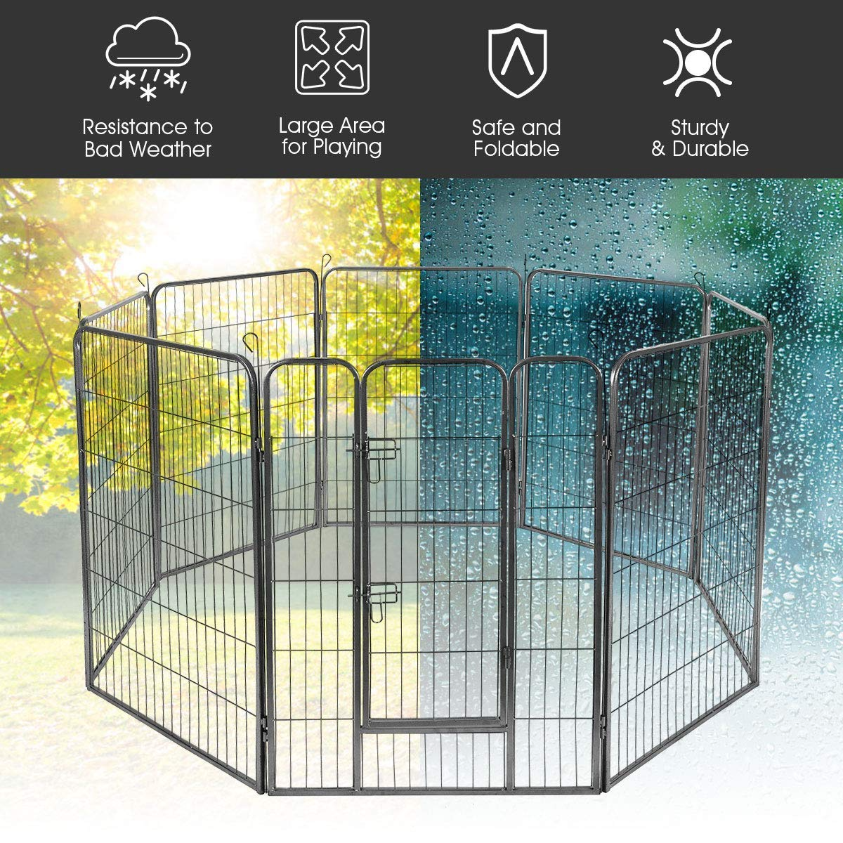 【Pet】Heavy Duty Indestructible Dog Crate with Sturdy Door Lock, Large Strong Metal Dog Kennel Playpen