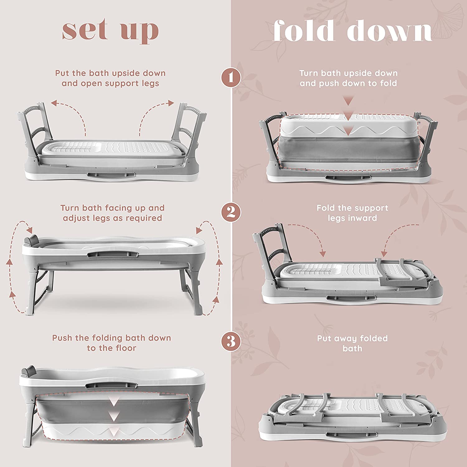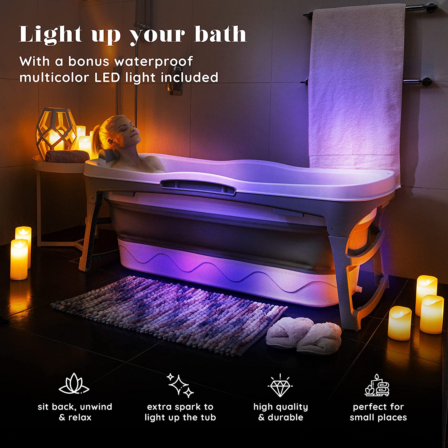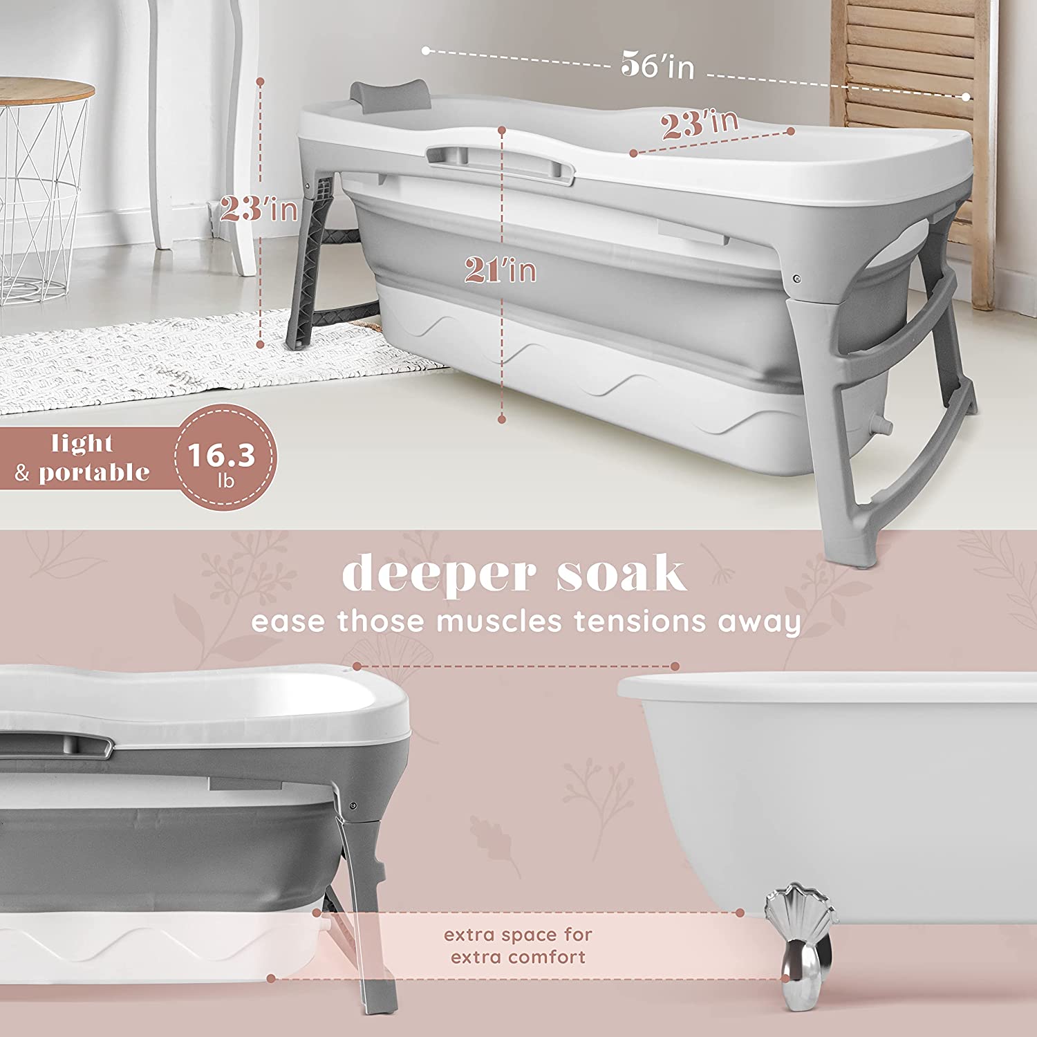 Portable Bathtub for Adult - Large 56'in Foldable Collapsible tub - Ergonomically Designed for the Ultimate Relaxing Soaking Bath