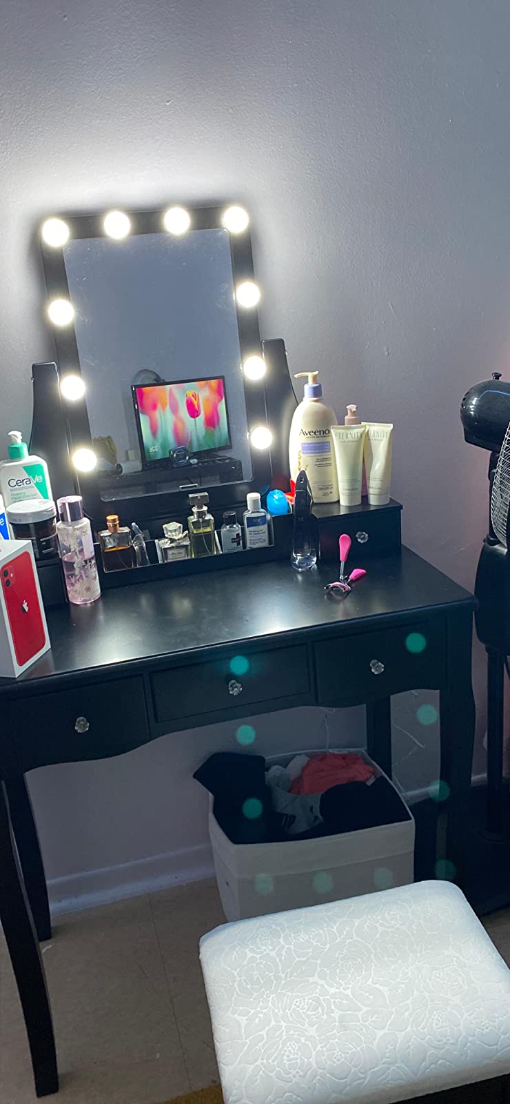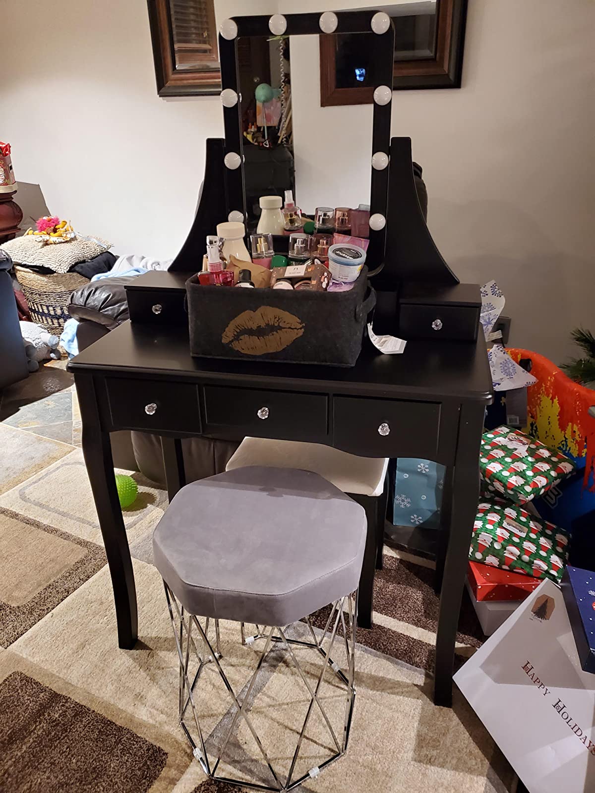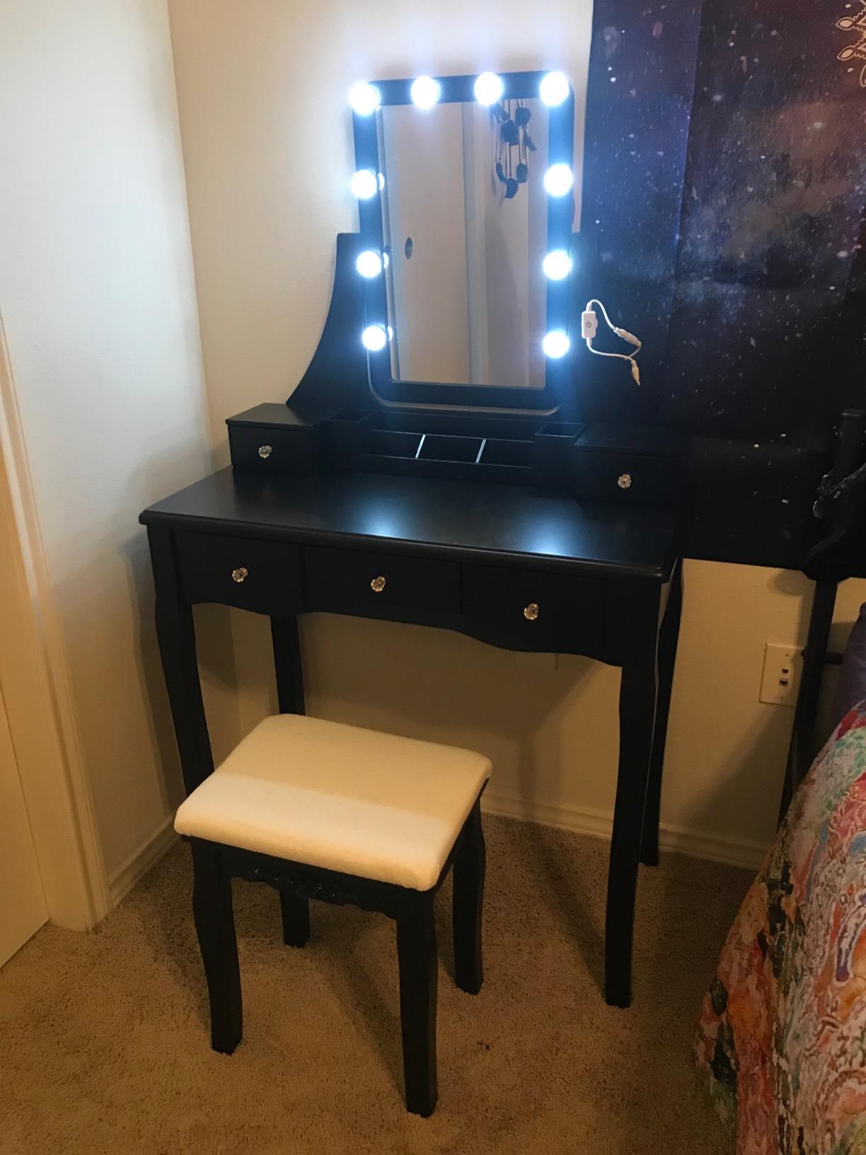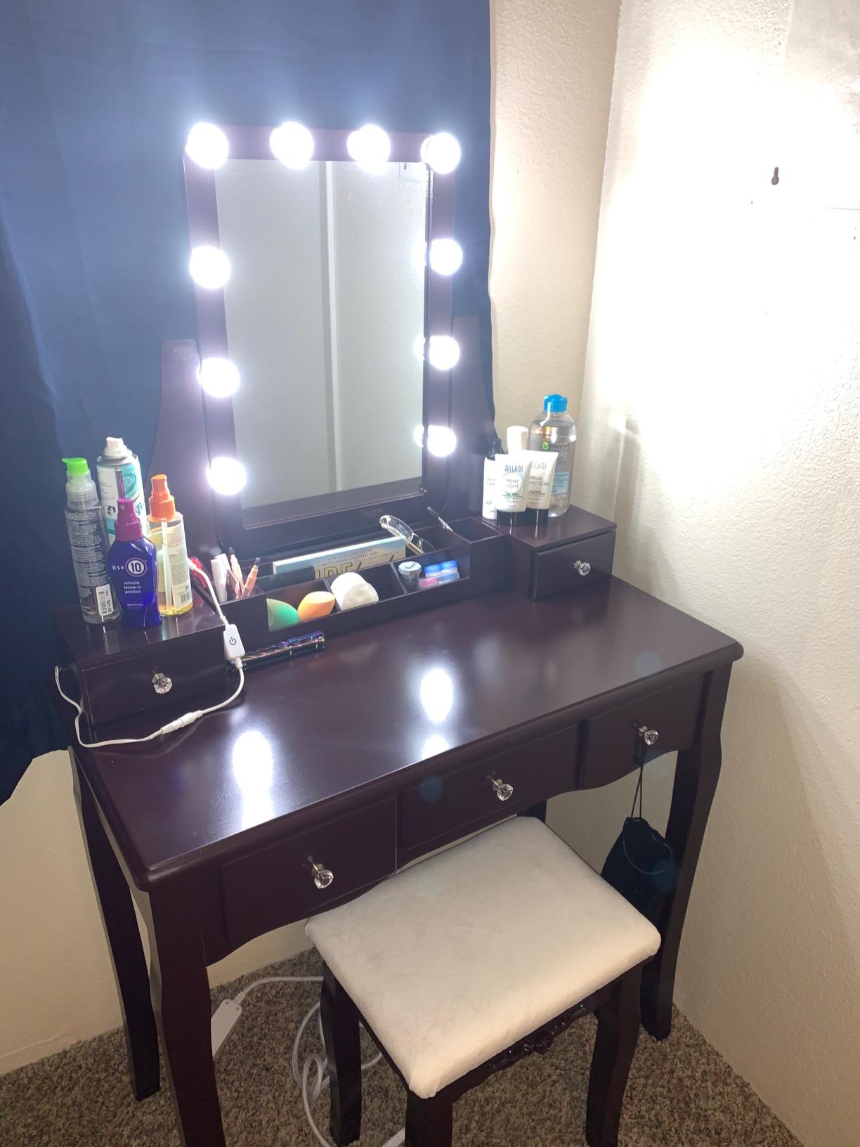 It's very nice. Definitely for people like me who don't have a lot of makeup. There's not much storage space, but it fits my needs.,I am satisfied with this vanity. It did find some flaws, but I only picked one star for all of them. First of all, there is some damage to the legs, which is definitely a shipping problem.