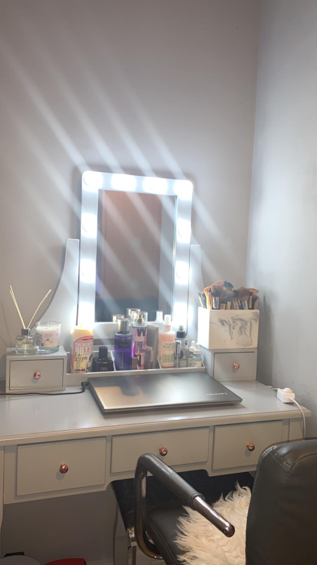 【10 LED Lights of Adjustable Brightness】: This great vanity set features 10 LED lights with unlimited adjustable brightness. Natural soft white light can accurately illuminate your skin tone, giving you a warm, bright and comfortable visual effects. The unique memory function ensures that when you turn the switch on, it still displays the last adjusted brightness.