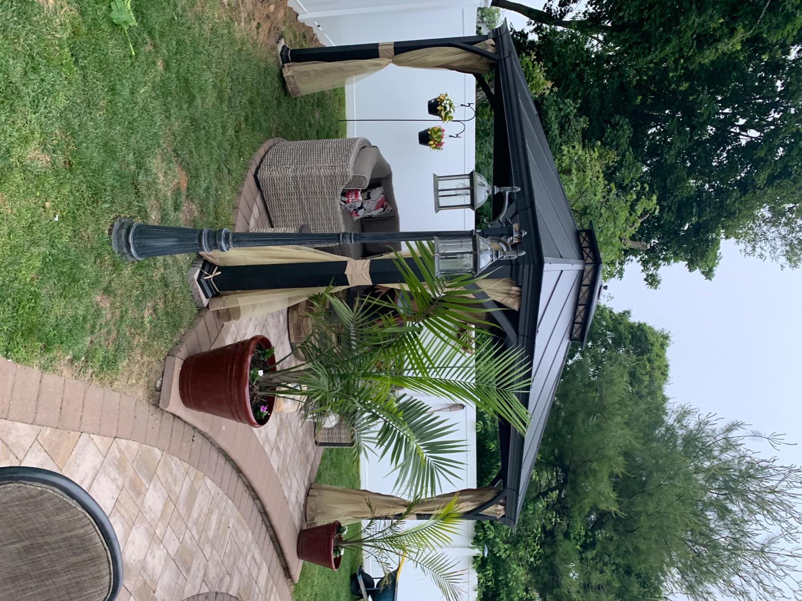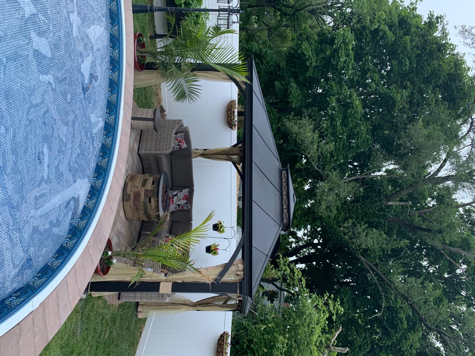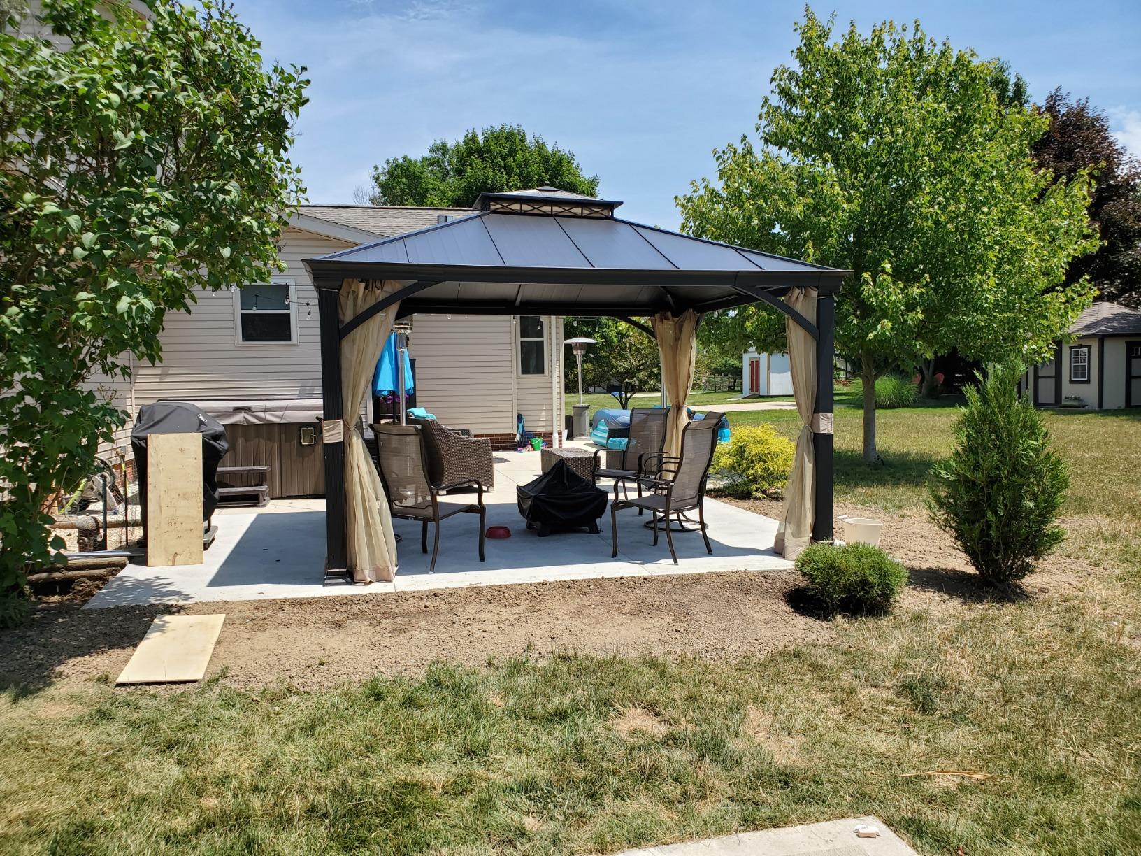 Very happy with this purchase....I looked around and what I especially liked about this is the design of the top accent piece of the gazebo...it gave it a more decorative look. Luckily my husband is very handy and put this together I would say in about 6 hours. I can see however where this would be hard for someone and they may need additional help. Happy to have the mosquito netting though which will be wonderful when sitting outside in the evening.