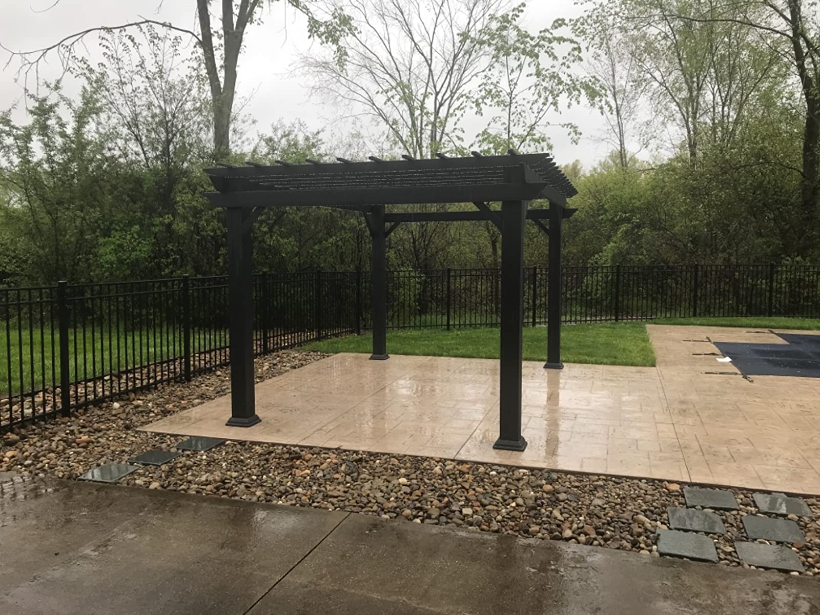 We bought this pergola as a focal point to a new paved patio in the middle of our backyard. We hired a landscape architect and landscaping company to completely redo our backyard. We ran out of budget to have a pergola built so bought this pergola instead. The company installed it for us and the crew said it was easy and components were high quality. The architect was very impressed and said she would recommend to other clients. It overwintered great. We wiped some dust off and it still looks brand new. Very happy.