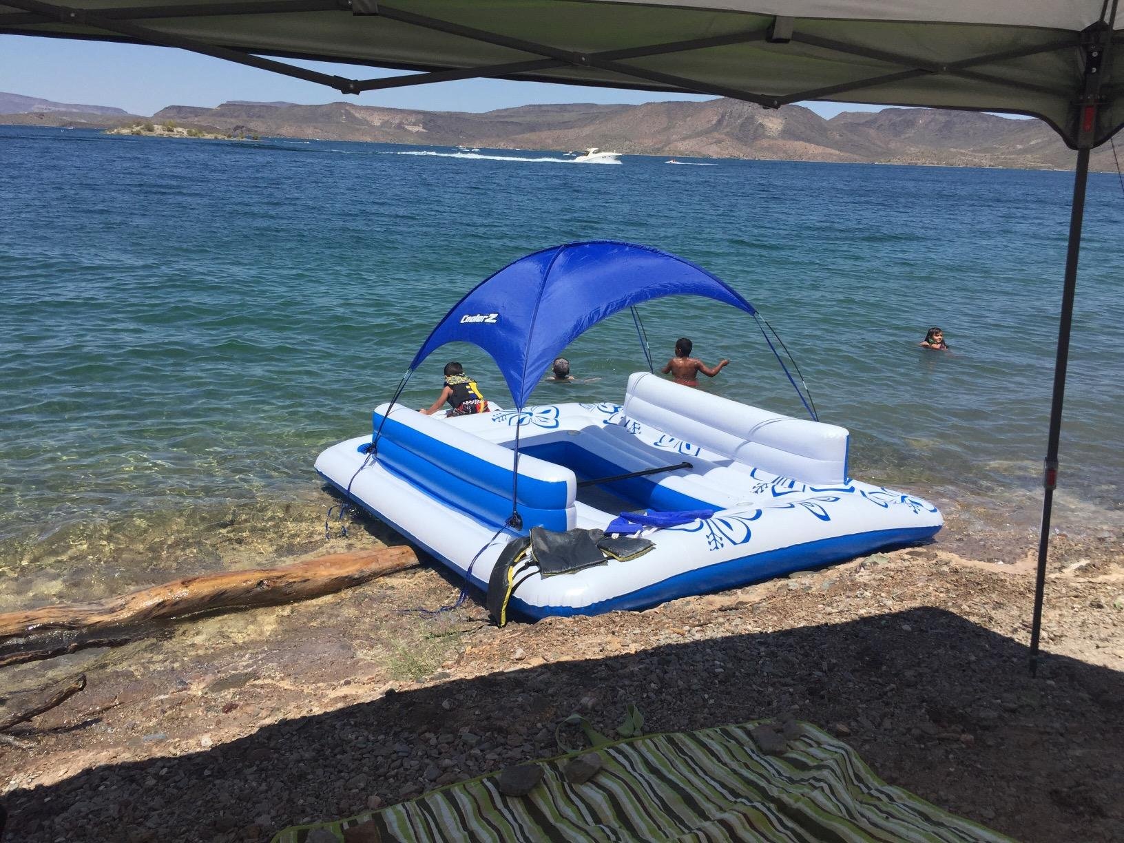This little float island is amazing. Just make sure you have a few friends to help you set it up. With the two of us it took about an hour to blow it up and get the canopy on. But it was well worth the effort, the smile on my kids face is worth it all.