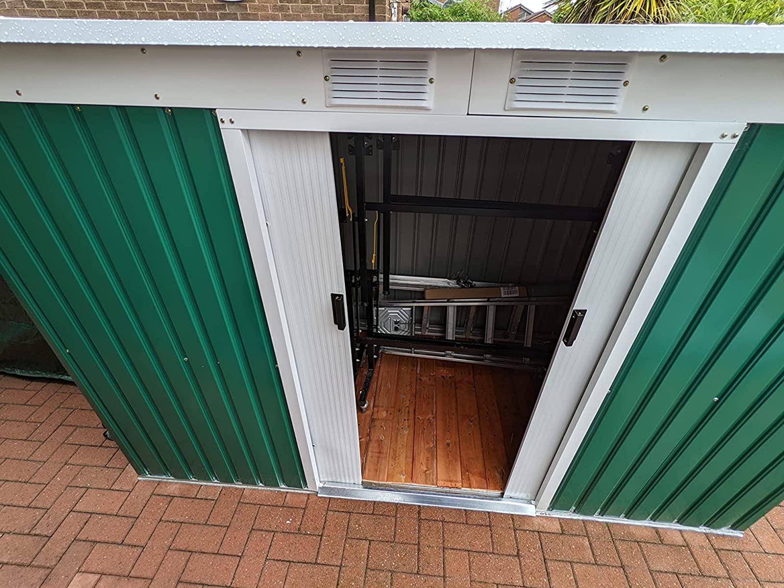 This is exactly what I needed, fits perfectly in the space and has withstood the awful weather we've had (rain, wind and snow) This was difficult to put up as the screws are very small, my partner did it alone over 3 days it's very fiddly and frustrating but worth it . It appears a bit filmsy but when it's up it's great. The doors open and close smoothly. I would recommend this product but be aware, it takes longer than you think to put it up
