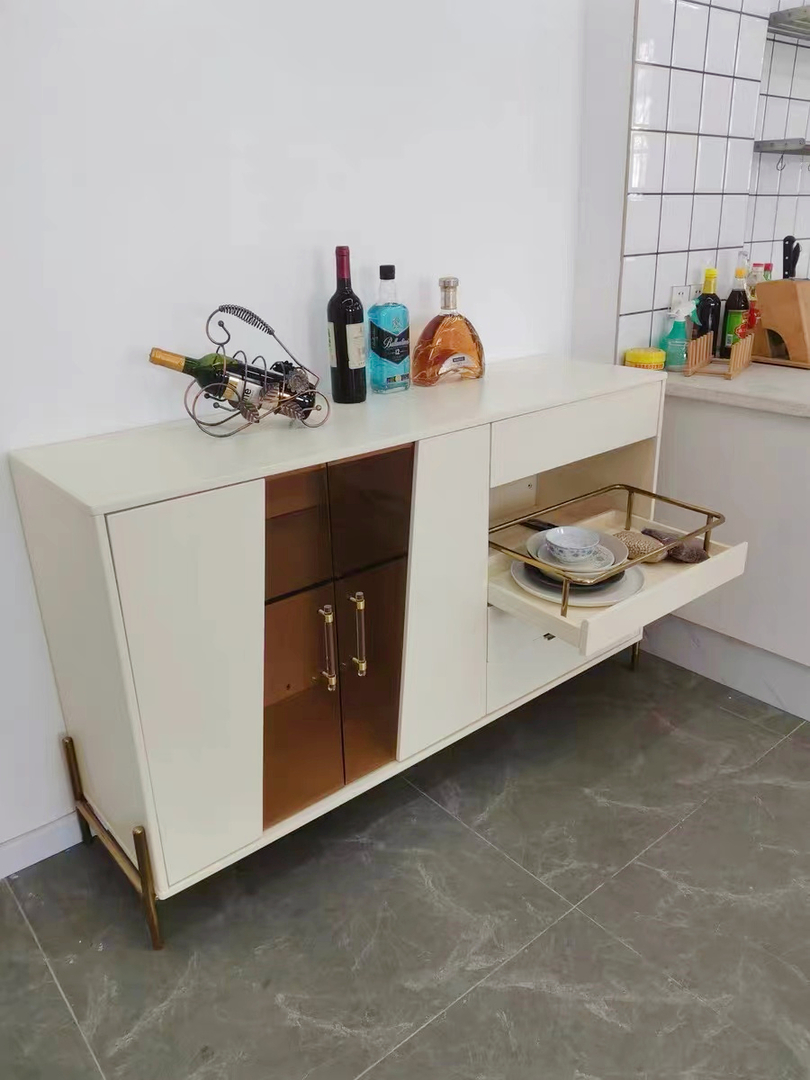Modern 55.1" Light Khaki Sideboard Buffet Tempered Glass Doors & Shelf Tray Wine Rack