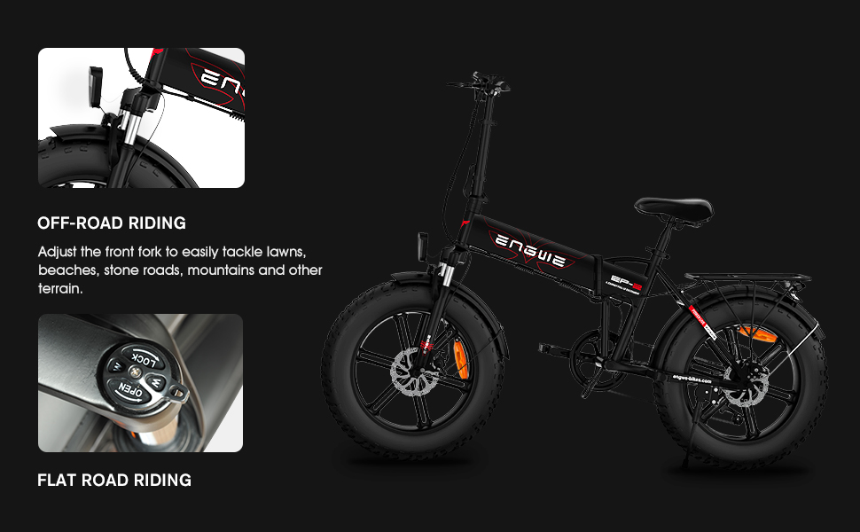 【Faster & Farther】 EP-2 PRO electric bike is styled in 6061 aluminum alloy frame, mechanical lock front suspension fork and adjustable seat and handbar, which match different height and riding style for a great riding experience. With the lightweight and efficient design, aluminum alloy 20 inch wheel suited to both urban and trail environments in good road condition.